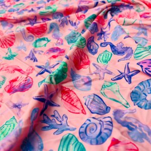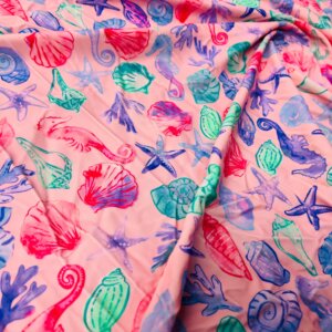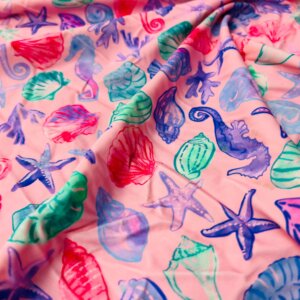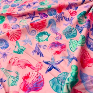 Be the first to review “Fish with Algae Pink Background Print Nylon Lycra Spandex Fabric 4 Way Stretch By Yard for swimwear dancewear gymwear sportwear dress (203-8)” Cancel reply
