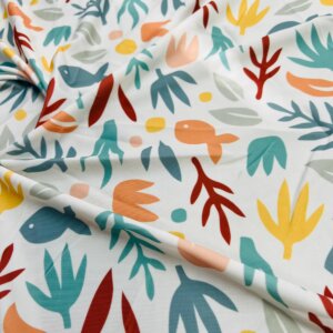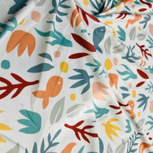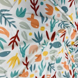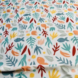 Fish with Algae White Background Print Nylon Lycra Spandex Fabric 4 Way Stretch By Yard for swimwear dancewear gymwear sportwear dress (203-2)
