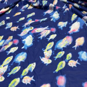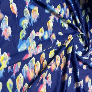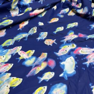 Fish with blue background print Nylon Nylon Lycra Spandex Fabric 4 Way Stretch By Yard for swimwear dancewear gymwear sportwear dress