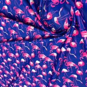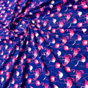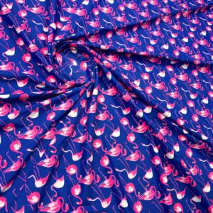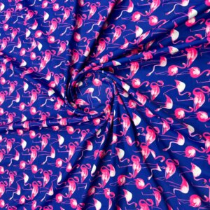 Flamingos Navy Blue background Print Nylon Spandex Fabric 4 Way Stretch By Yard for swimwear dancewear gymwear sportwear dress skirt (239-12)