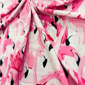 Flamingos Print Nylon Lycra Spandex Fabric 4 Way Stretch By Yard for swimwear dancewear gymwear sportwear dress (242-13)