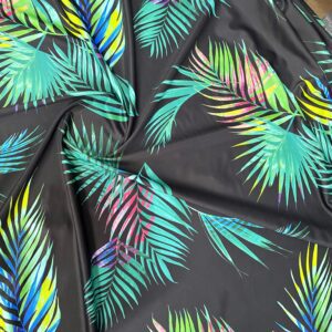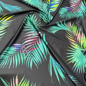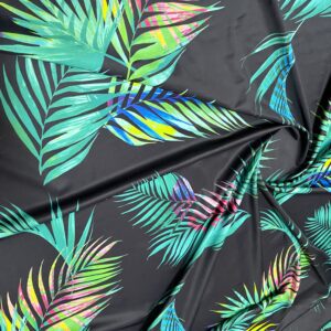 Bright Colors Floral Print Nylon Lycra Spandex Fabric With Black Background 4 way Strech by yard