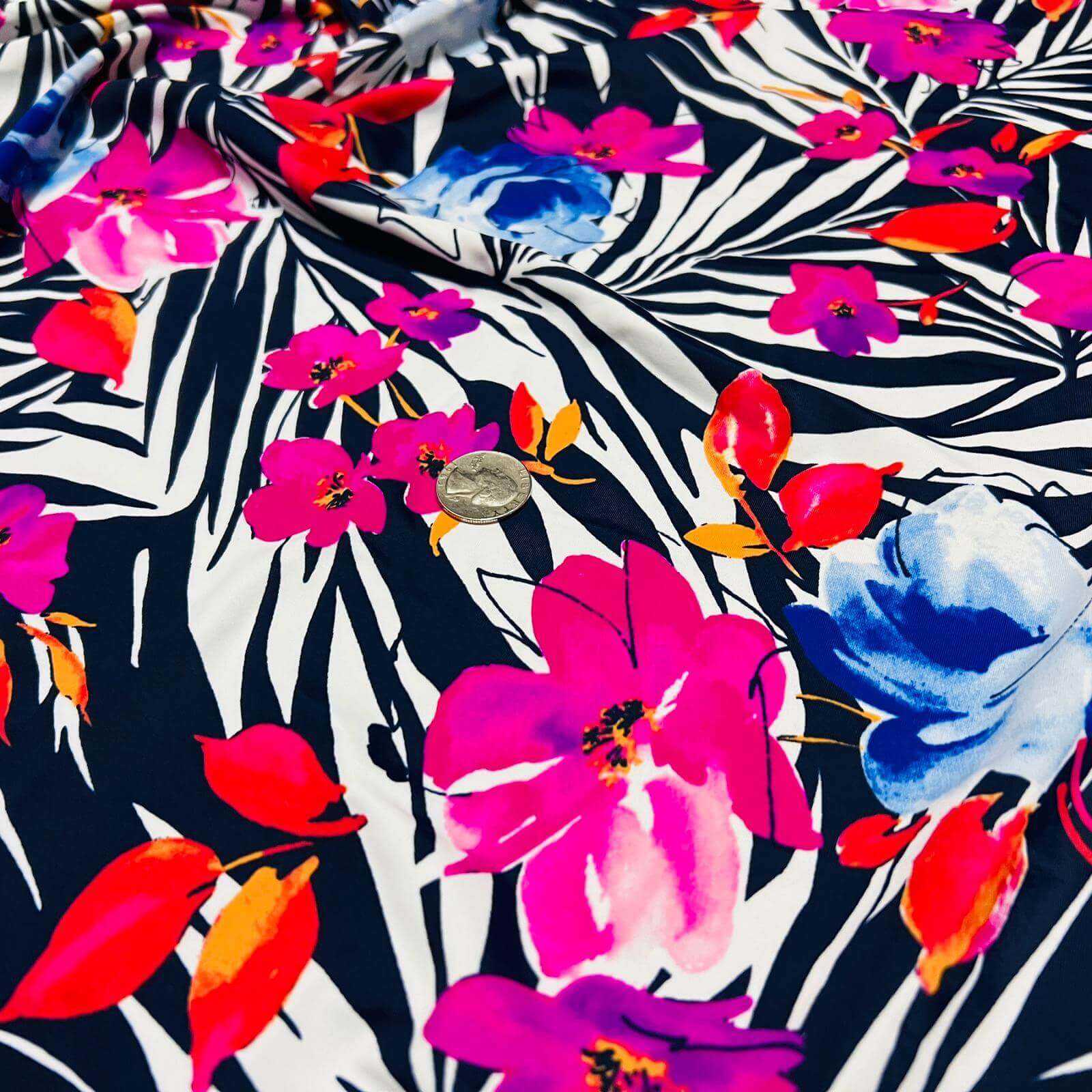 Floral Print Nylon Lycra Spandex Fabric 4 Way Strech by Yard for swimwear dancewear dress gymwear (157-8)