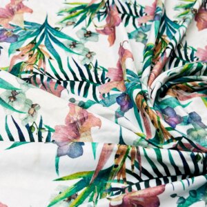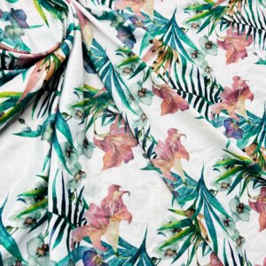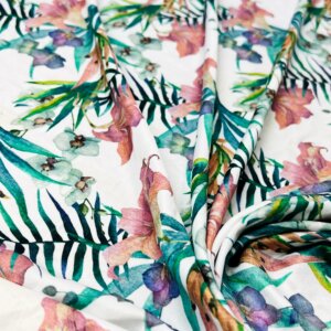 Floral Vintage White Background Print Nylon Lycra Spandex Fabric 4 Way Stretch By Yard for swimwear dancewear gymwear sportwear dress (203-1)