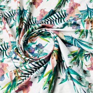Floral Vintage White Background Print Nylon Lycra Spandex Fabric 4 Way Stretch By Yard for swimwear dancewear gymwear sportwear dress (203-1)