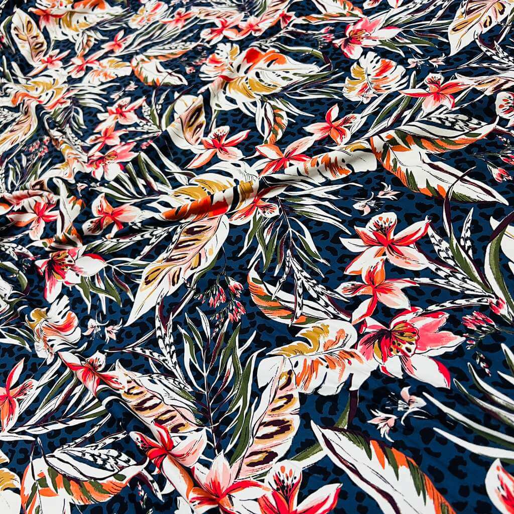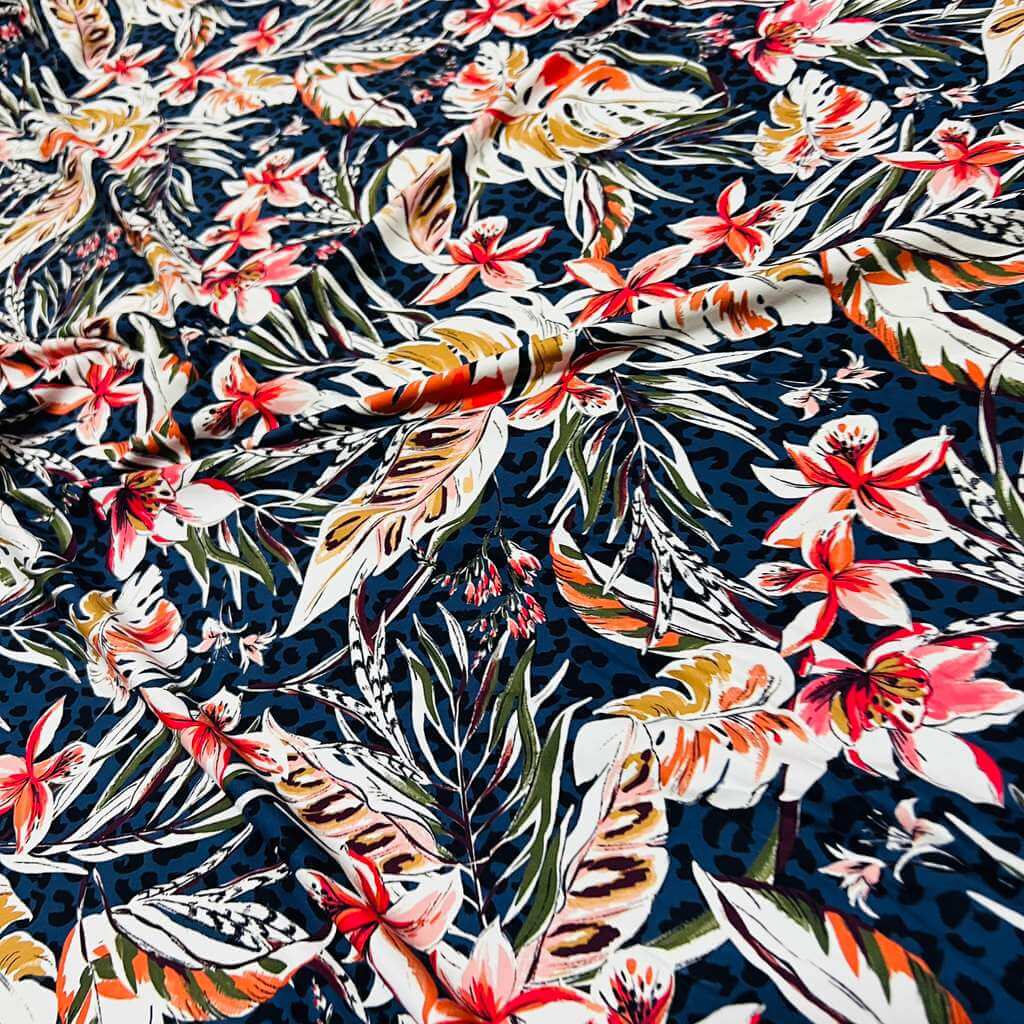 Flowers and Animal Print Leopard Background print Nylon Lycra Spandex Fabric 4 Way Strech by Yard for swimwear dancewear dress gymwear (159-7)(19)