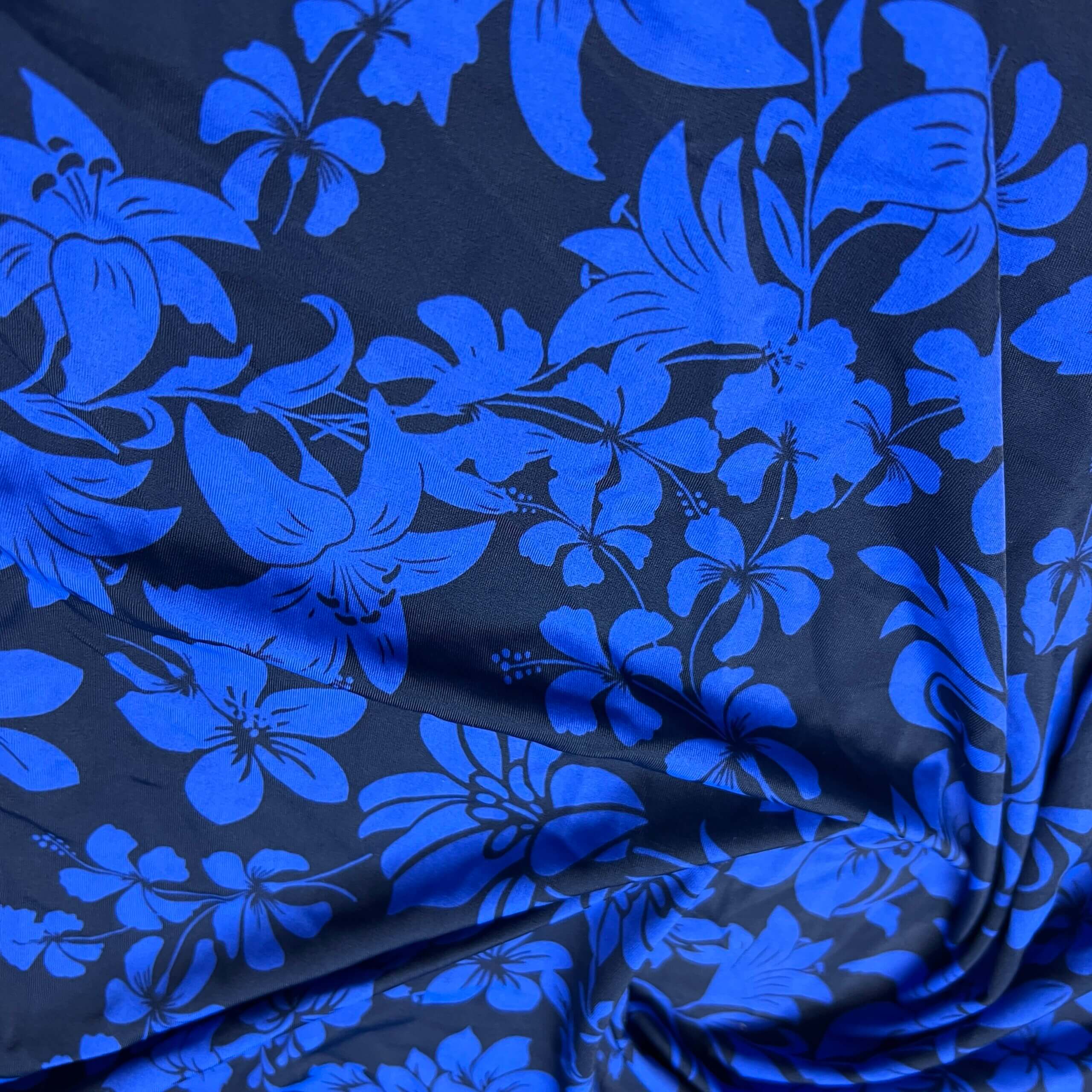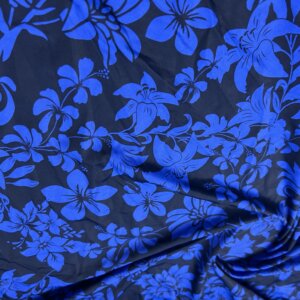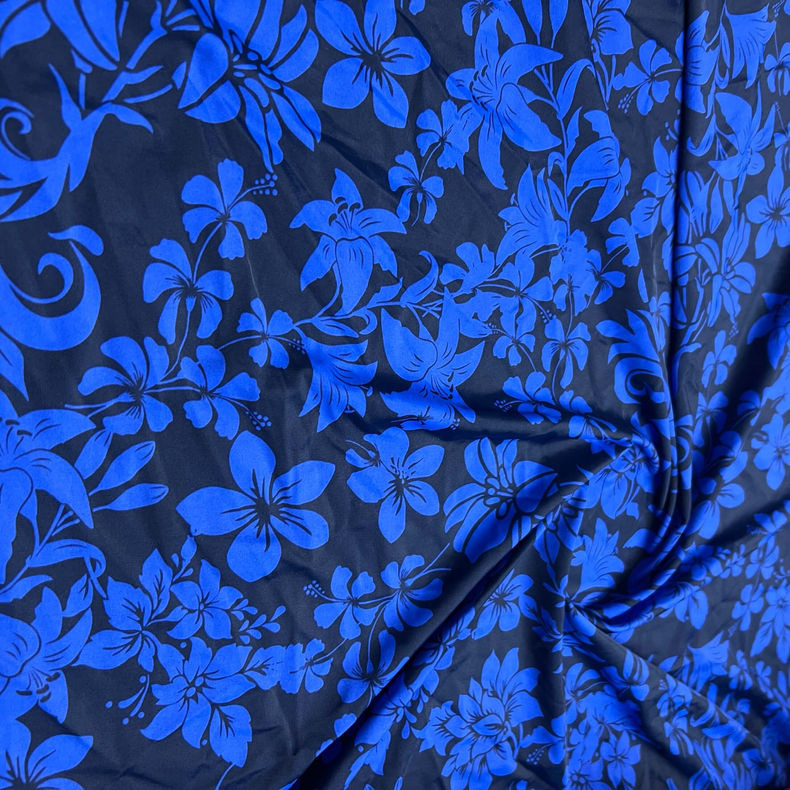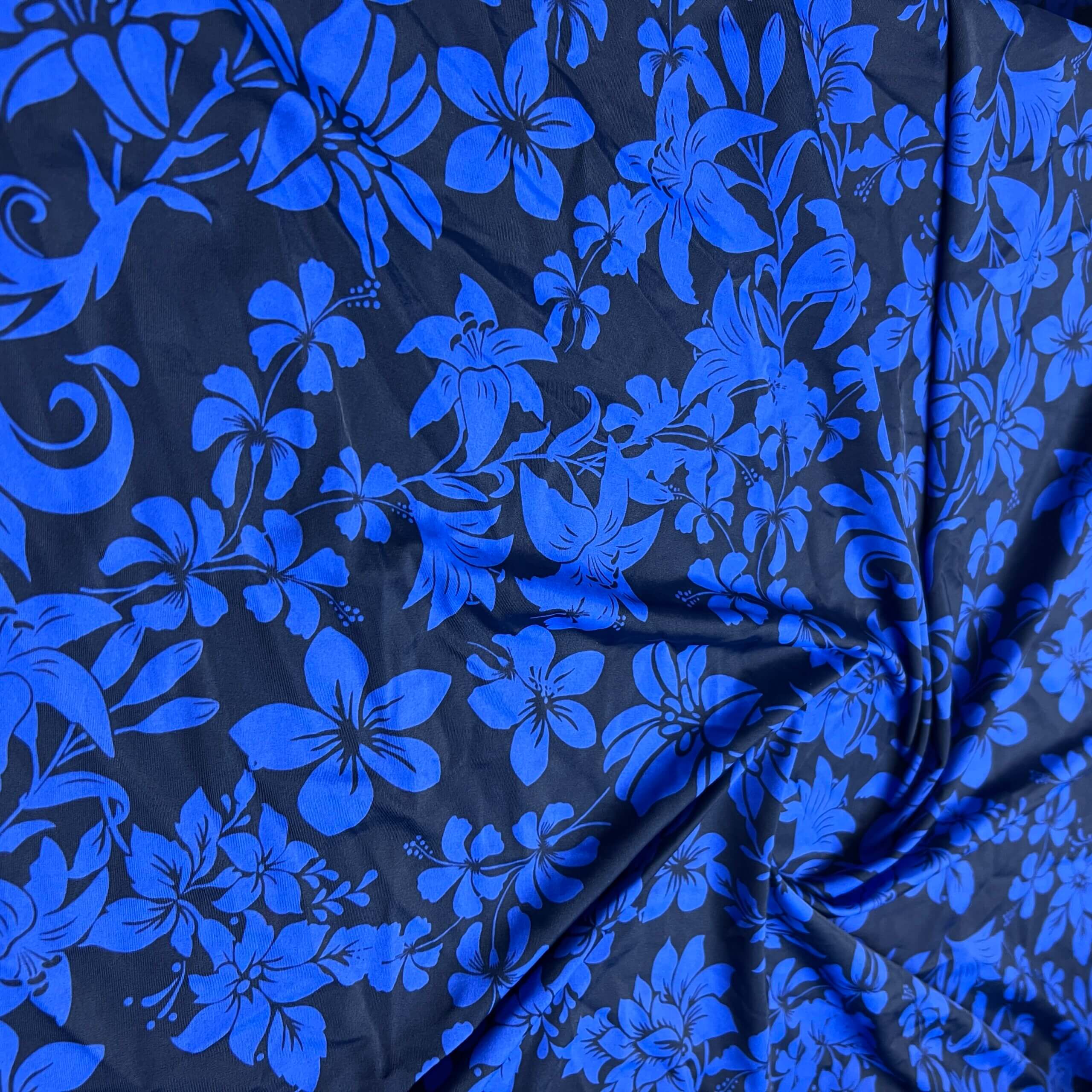 Flowers Blue Background Print Nylon Lycra Spandex Fabric 4 Way Stretch by Yard