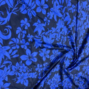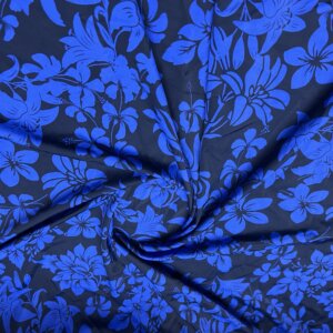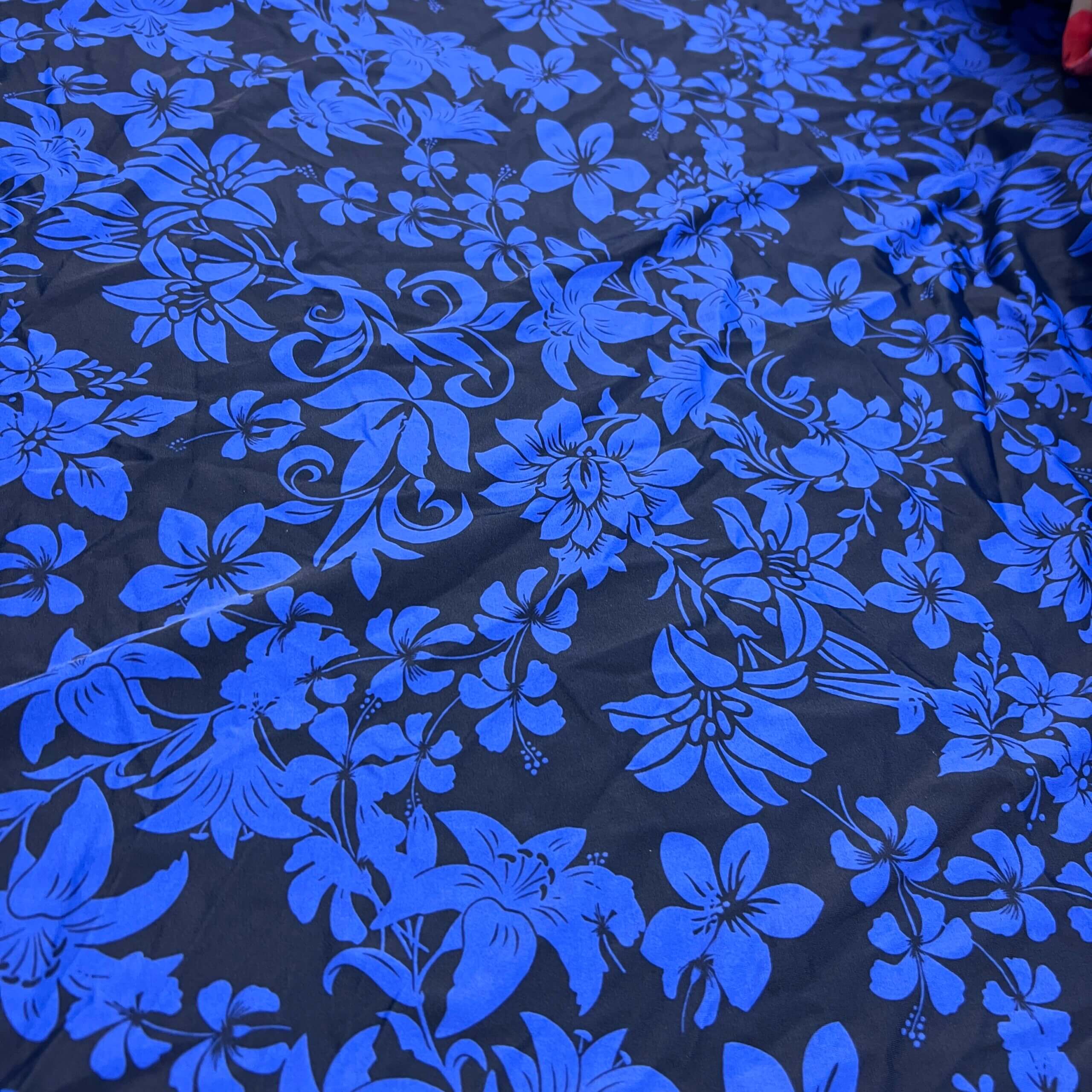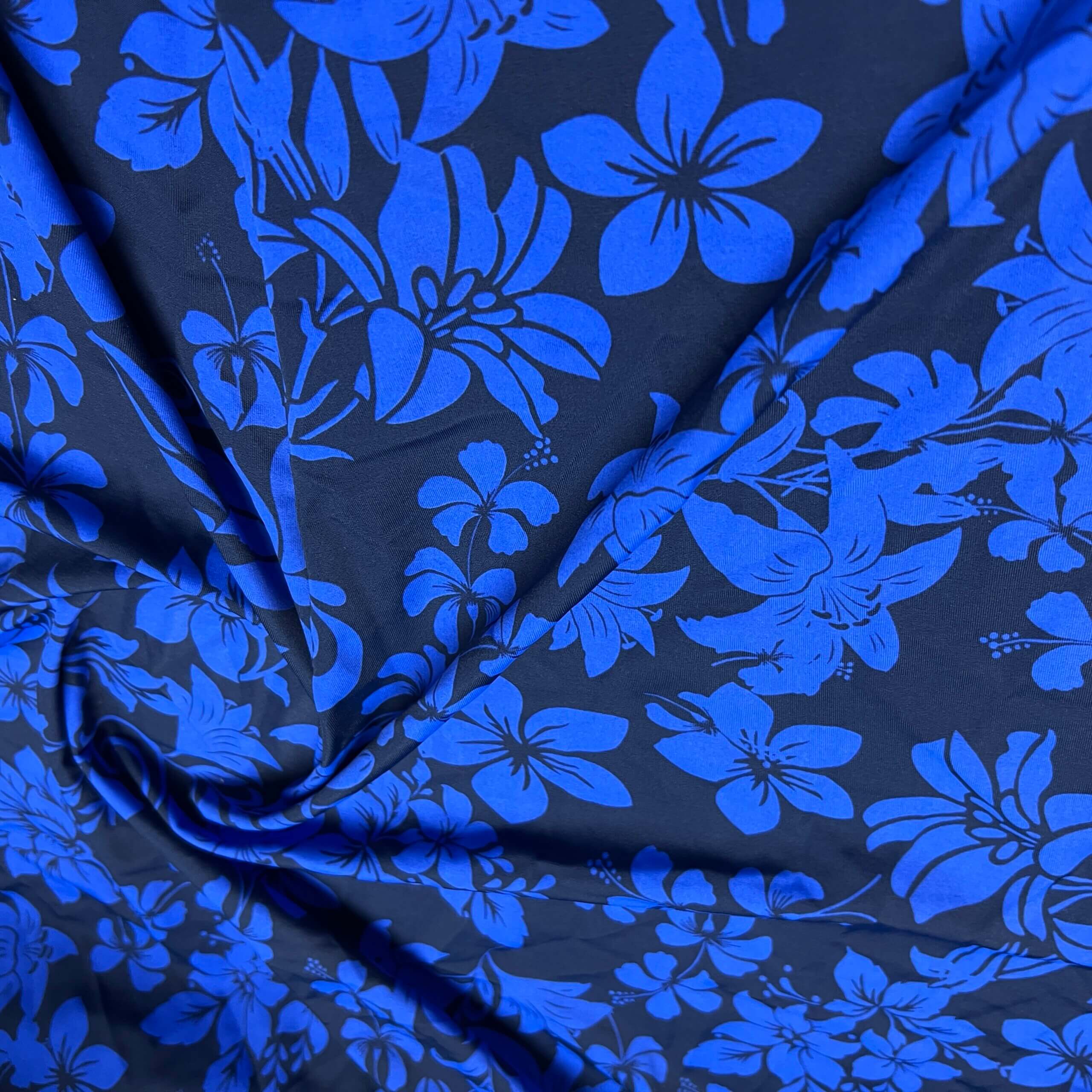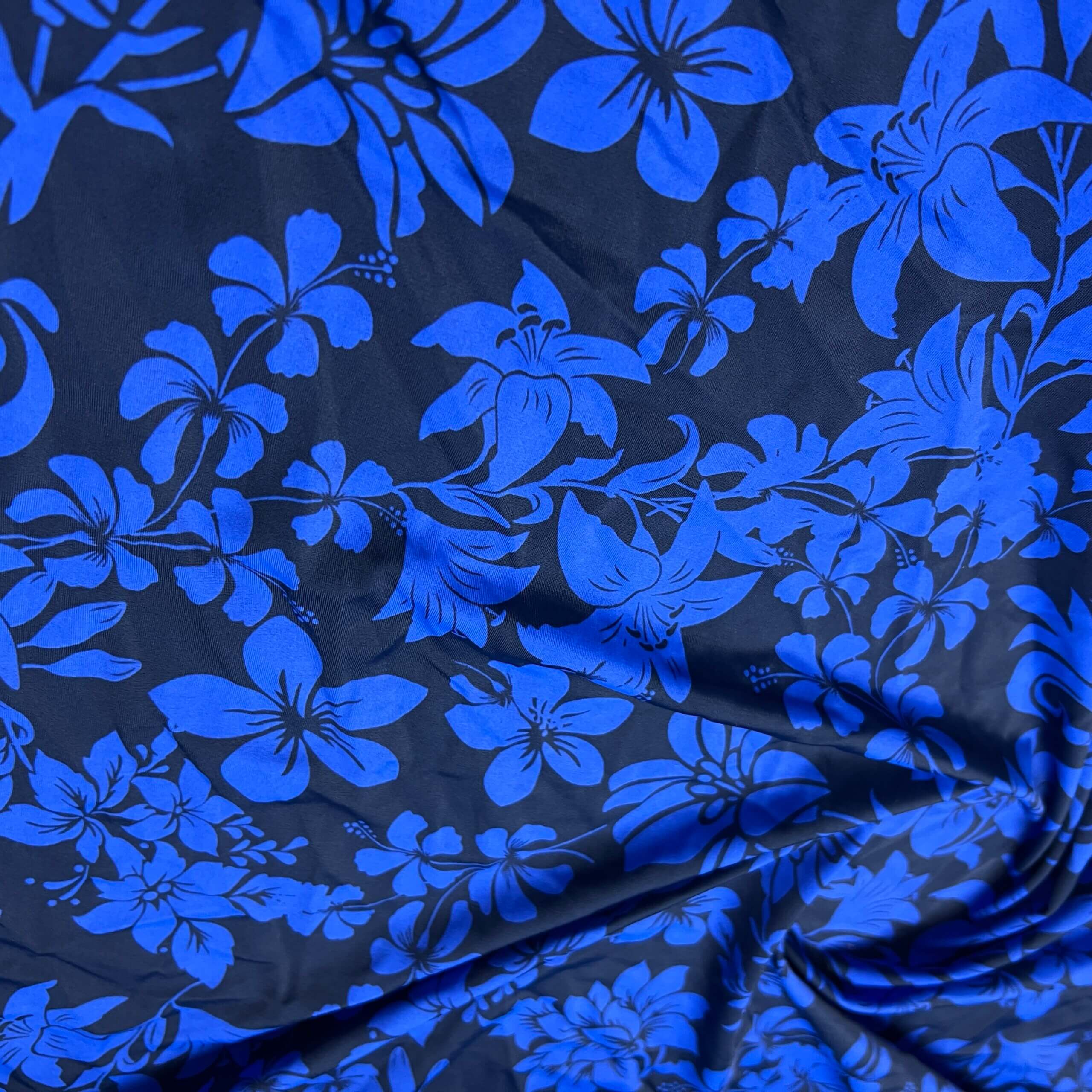 Flowers Blue Background Print Nylon Lycra Spandex Fabric 4 Way Stretch by Yard