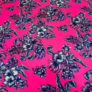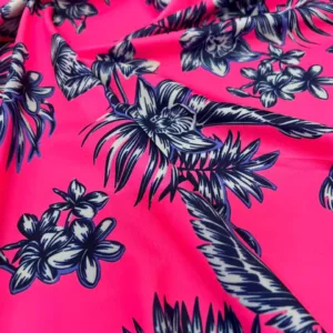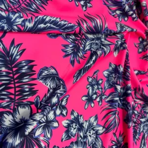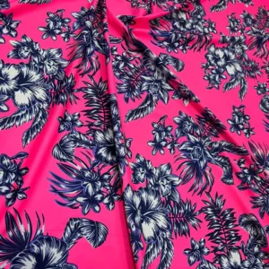 Flowers Hot Pink background Print Nylon Lycra Spandex fabric four way Stretch by Yard for swimwear dancewear dress gymwear (203-8)