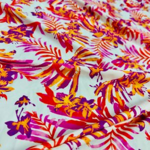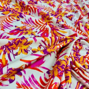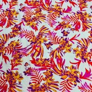 Fuchsia Flowers White Background Print Nylon Lycra Spandex Fabric 4 Way Stretch By Yard for swimwear dancewear gymwear sportwear dress (279-10)