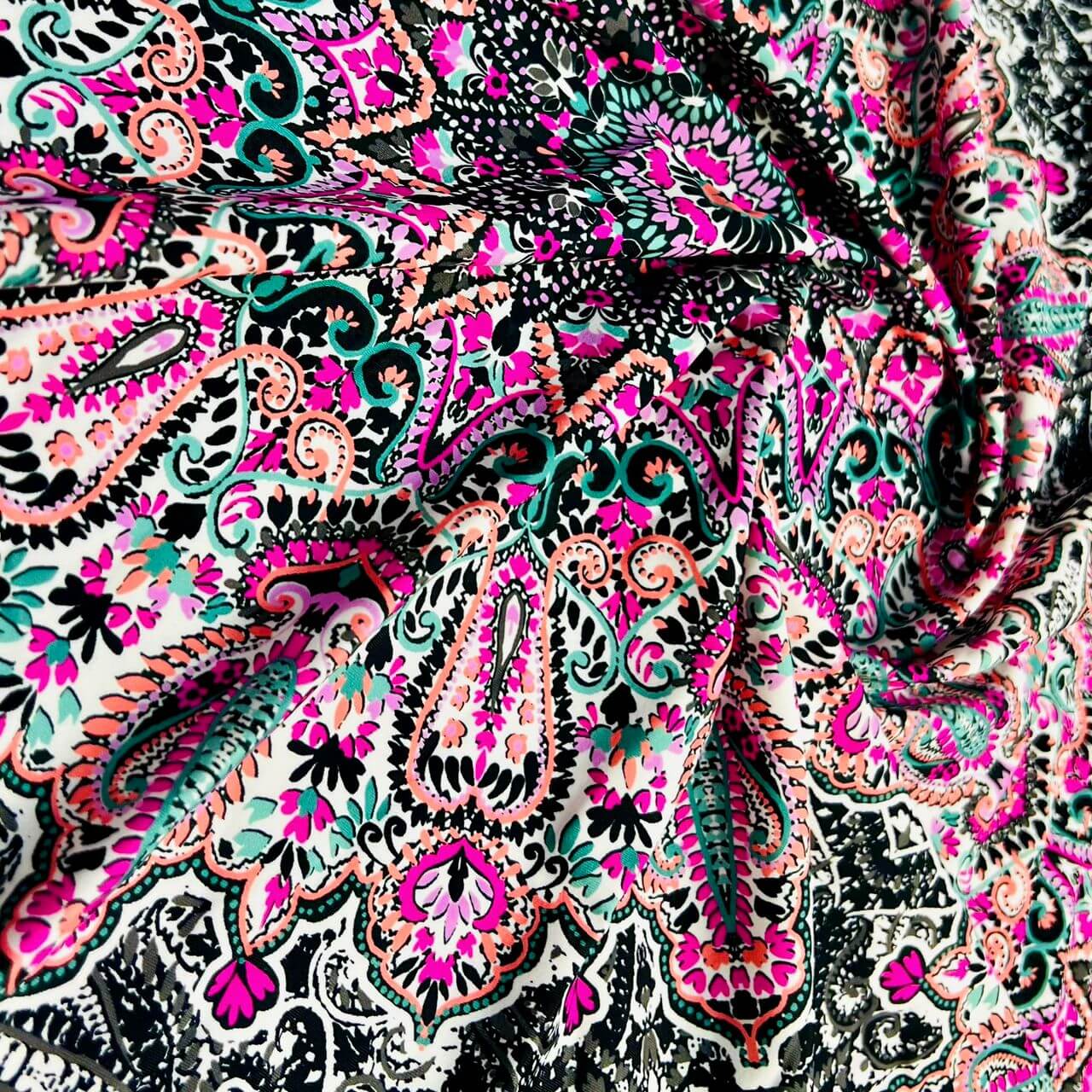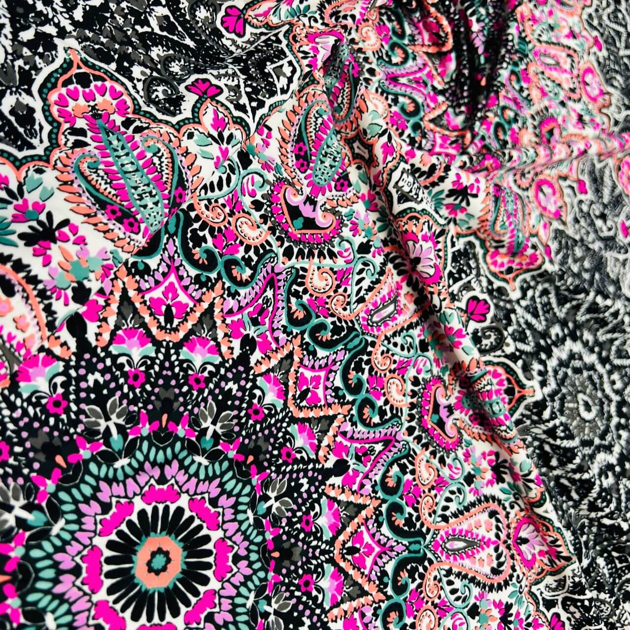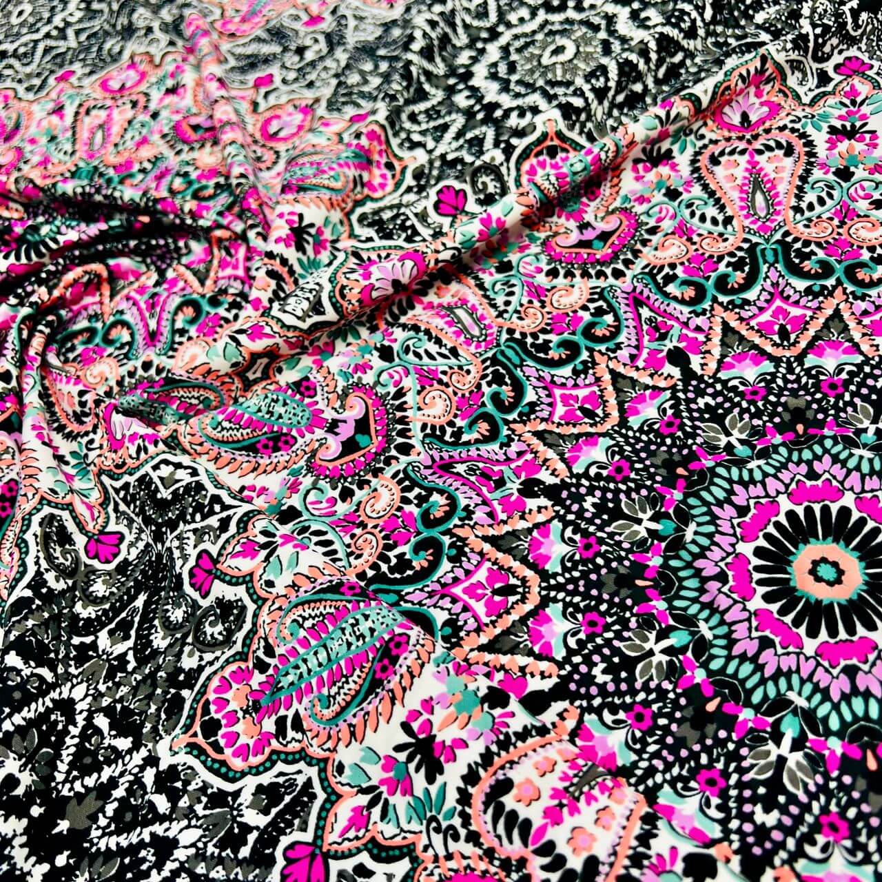 Fuchsia Mandala Print Nylon Lycra Spandex Fabric 4 Way Stretch By Yard for swimwear dancewear gymwear sportwear dress (203-6)