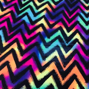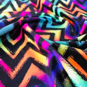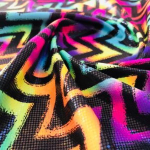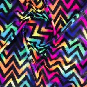 Geometric Zic-Zac Clear Foil Neon print Nylon Lycra Spandex Fabric 4 Way Stretch By yard (279-4)