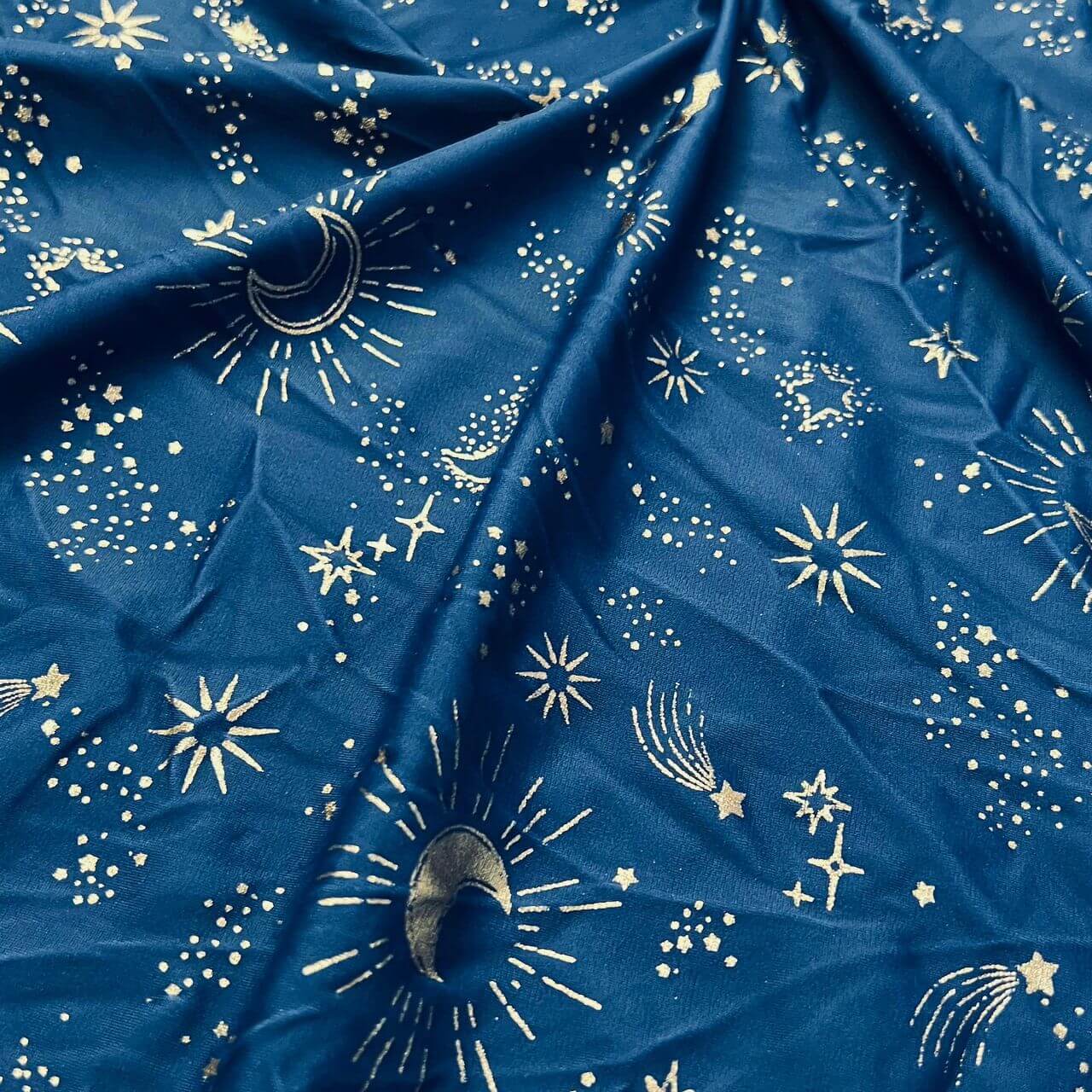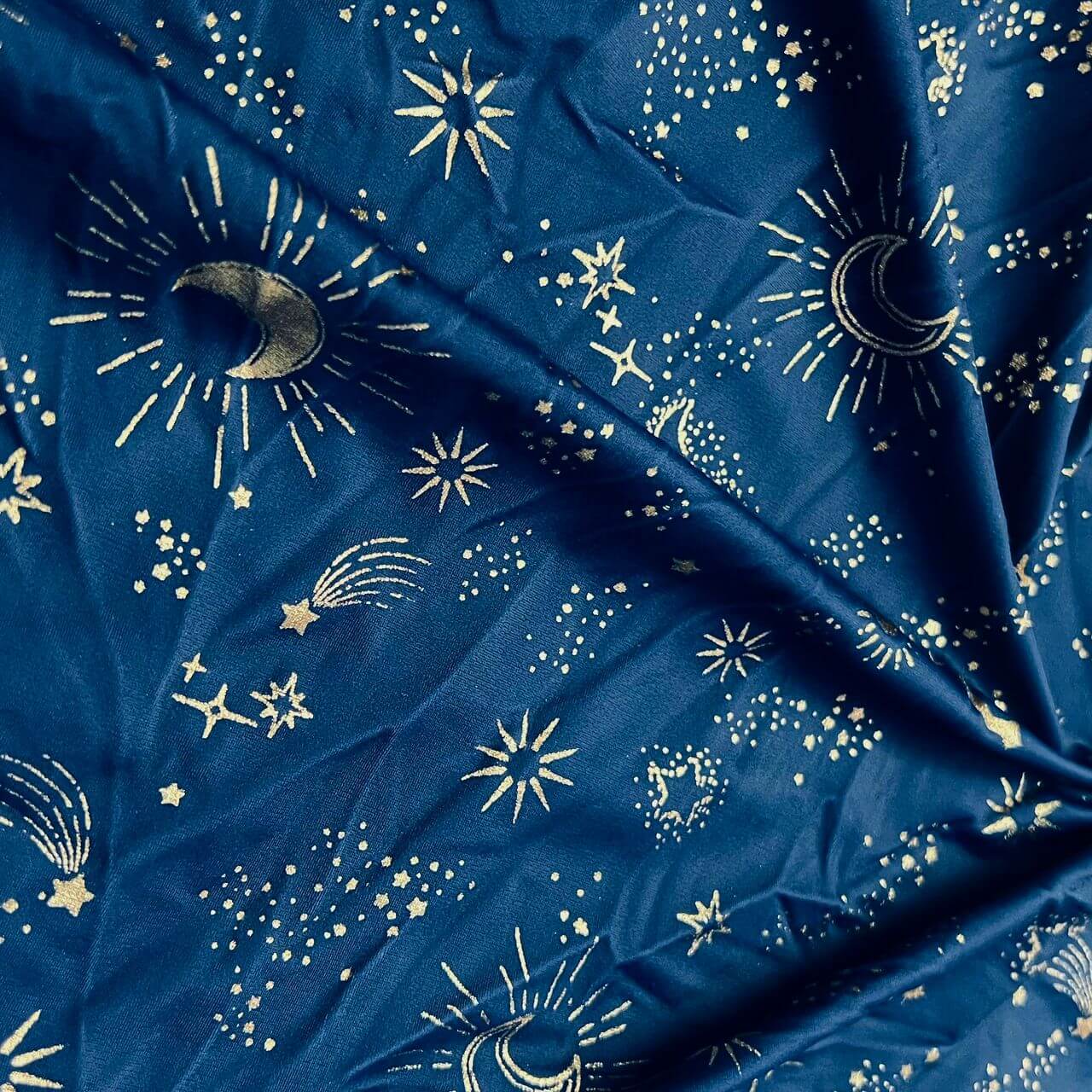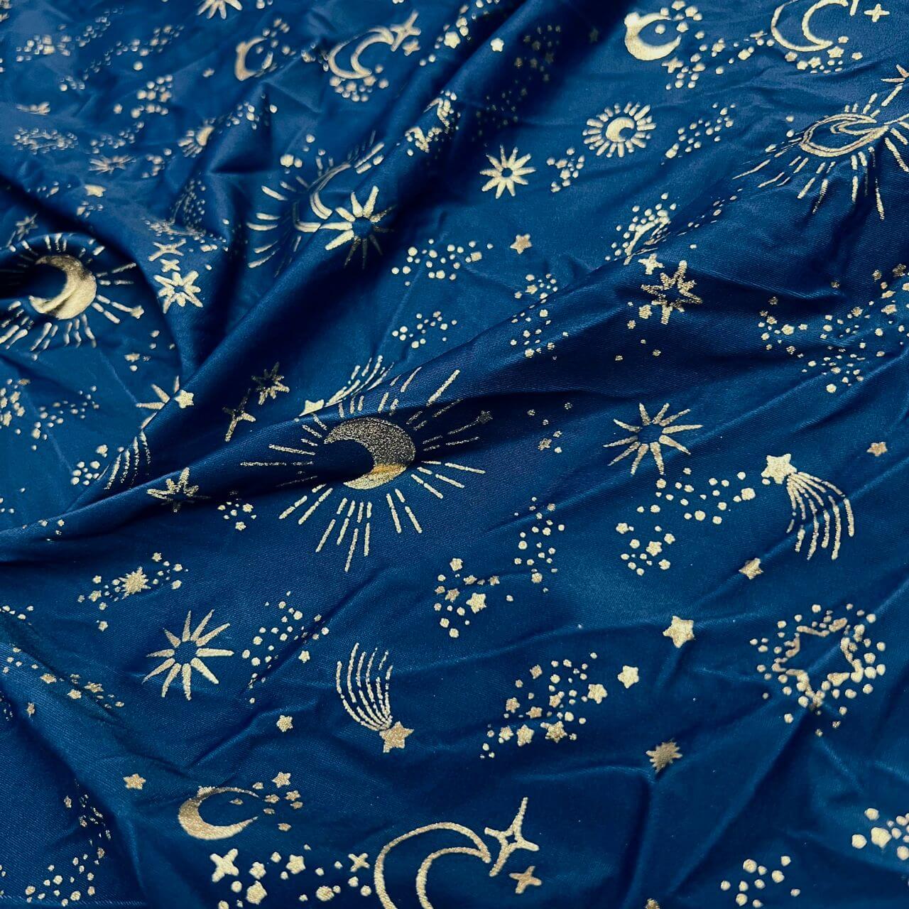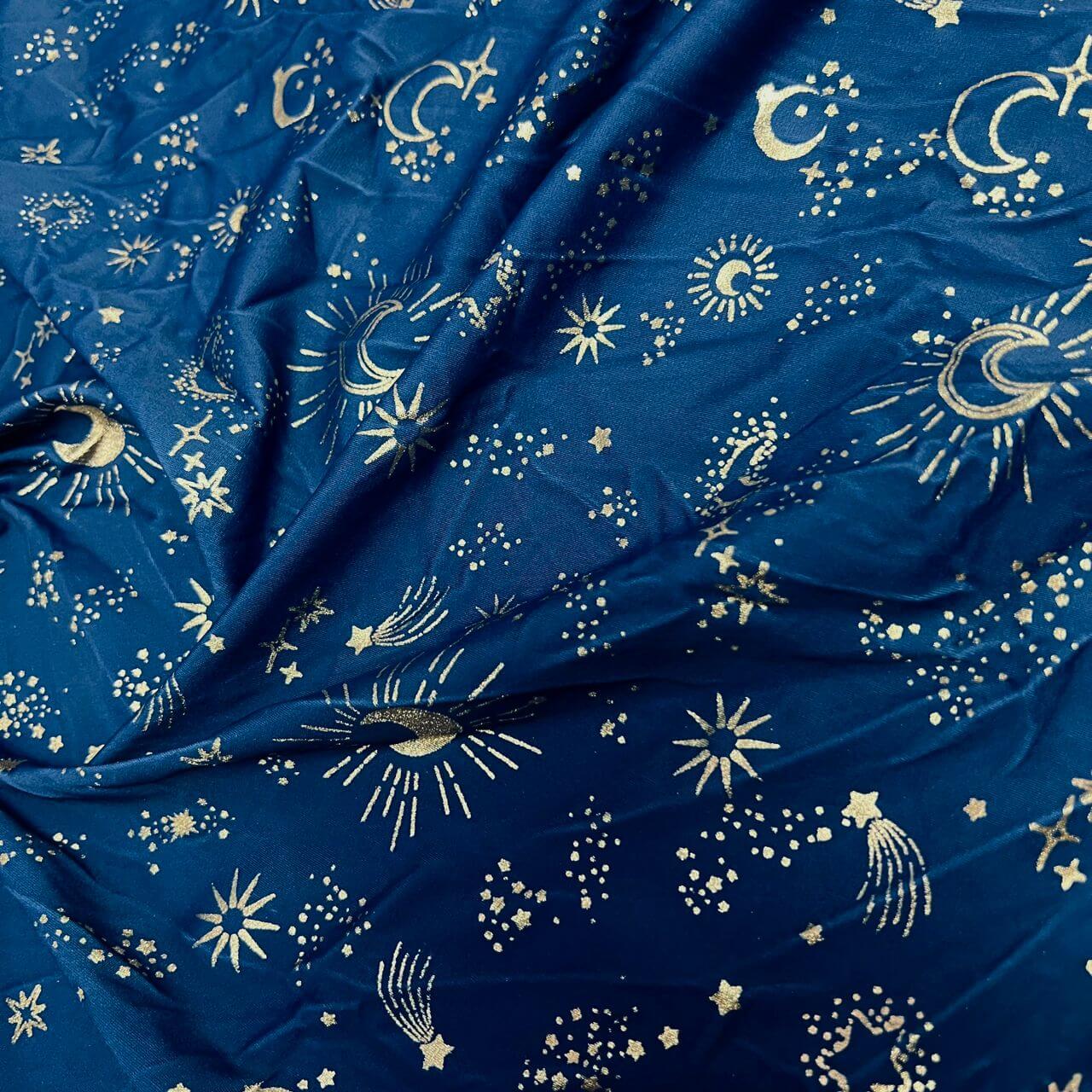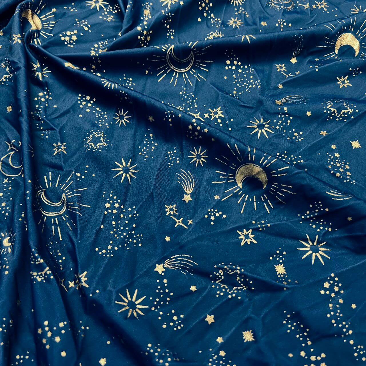 Golden Astrological Navy Blue Background Print Nylon Lycra Spandex Fabric 4 Way Stretch By Yard for swimwear dancewear gymwear sportwear dress (203-2)