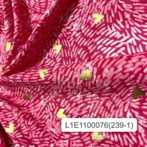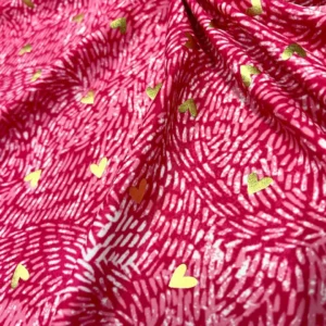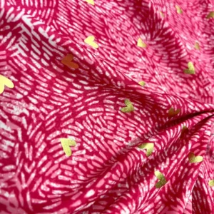 Valentine`s Golden foil Hearts with Red print background Print Nylon Spandex Fabric 4 Way Stretch By Yard
