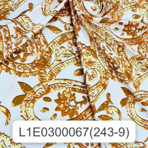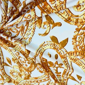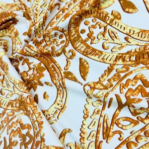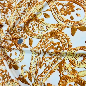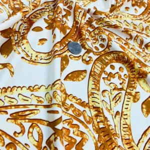 Golden Paisley White background Print Nylon Spandex Fabric 4 Way Stretch By Yard for swimwear dancewear gymwear sportwear dress skirt (205-9)