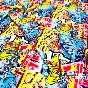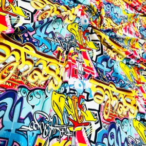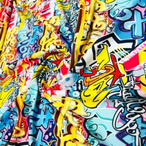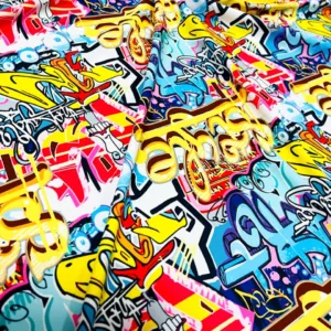 Graffiti Print Nylon Lycra Spandex Fabric 4 Way Stretch for Swimwear Dancewear Sportwear (205-9)