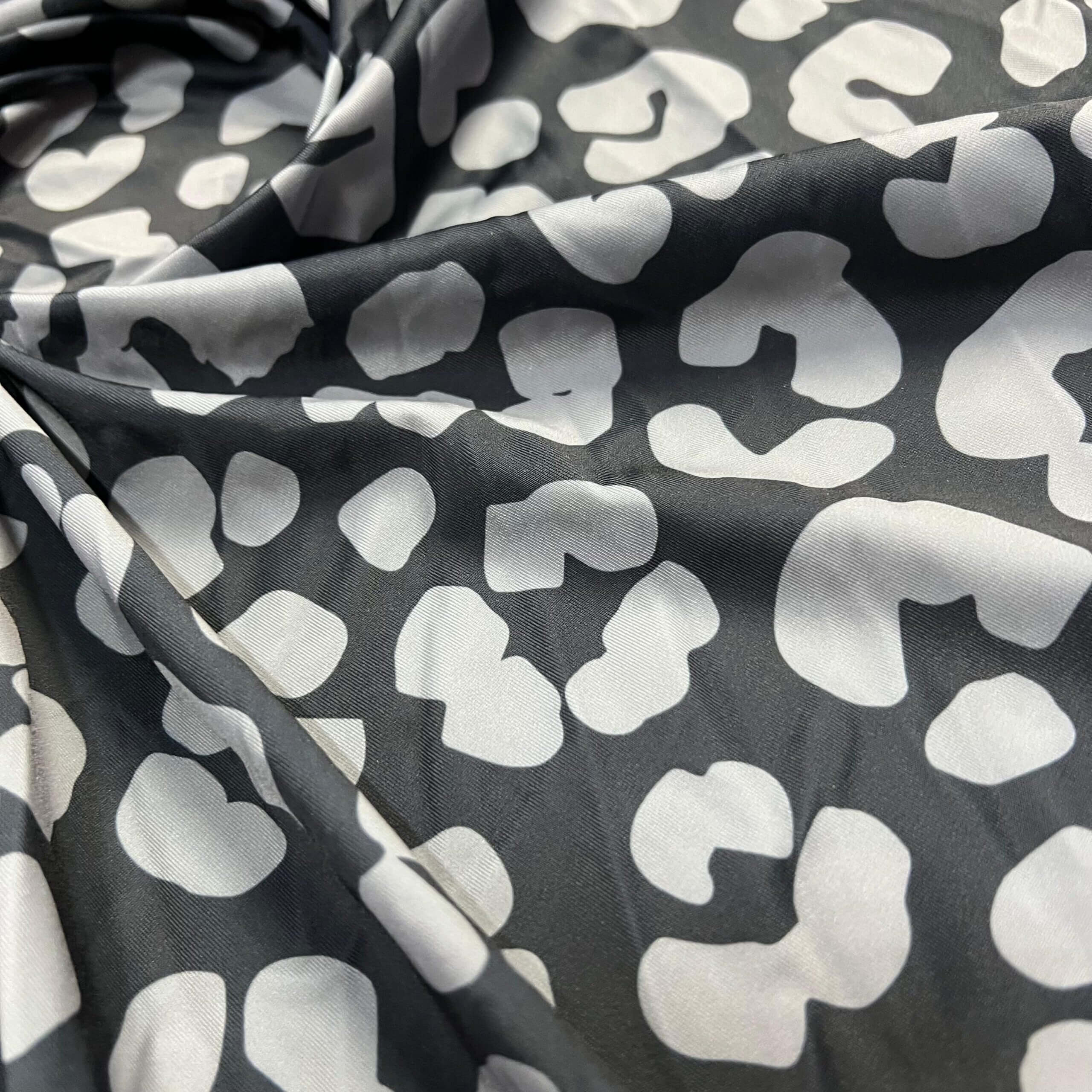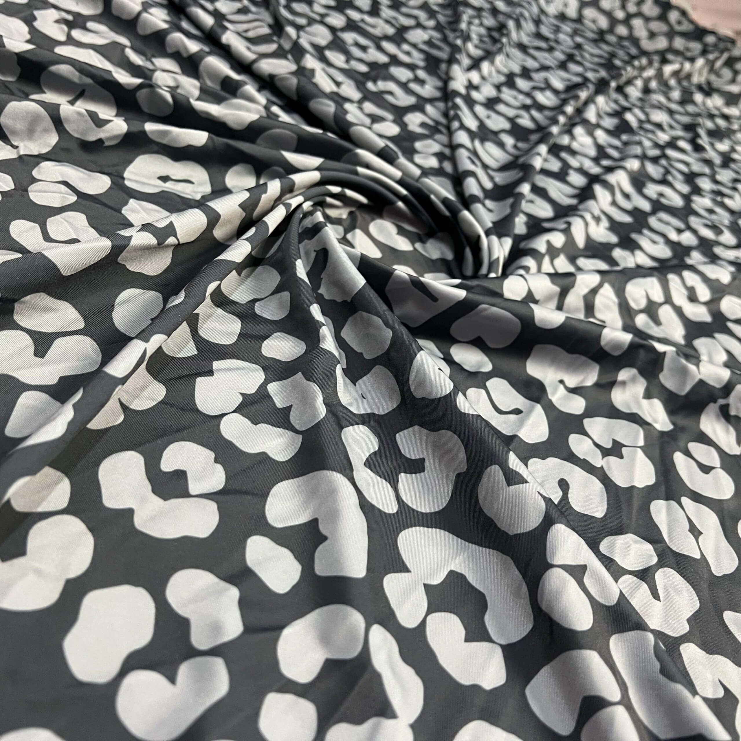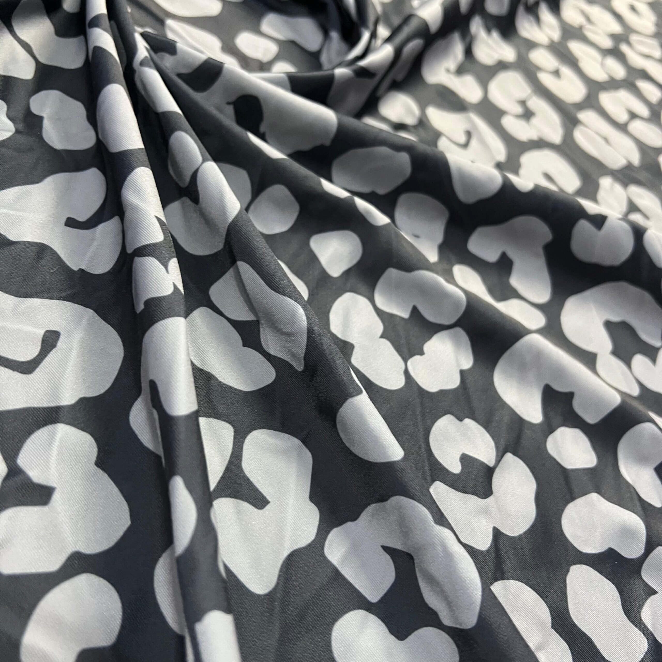 Gray and Black Leopard Animal Print Nylon Spandex Fabric 4 Way Stretch for swimwear dancewear gymwear sportwear dress skirt (239-8)
