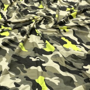 Gray and Yellow Military Camouflage Print Nylon Lycra Spandex Fabric 4 Way Stretch By Yard for swimwear dancewear gymwear sportwear dress (157-1)