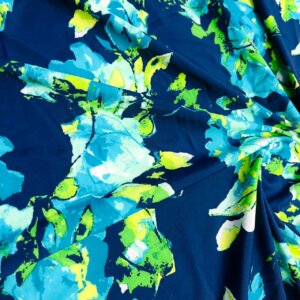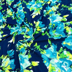Green and Blue Flowers Print Nylon Lycra Spandex Fabric 4 Way Stretch By Yard for swimwear dancewear gymwear sportwear dress (279-6)