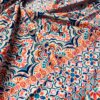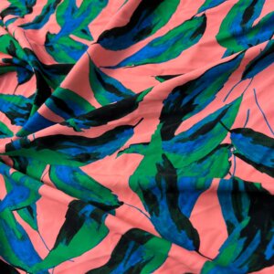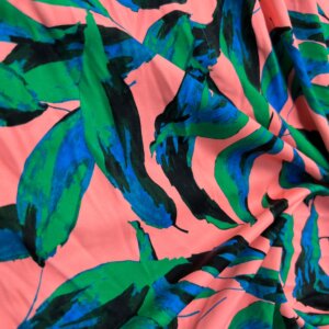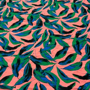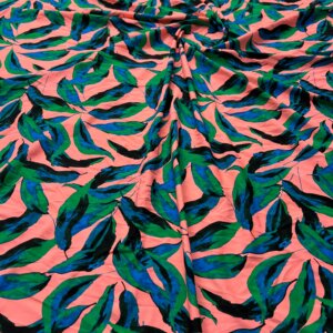 Green and Blue Leaves Coral Background Print Nylon Spandex Fabric 4 Way Stretch for swimwear dancewear gymwear sportwear dress skirt (158-1)