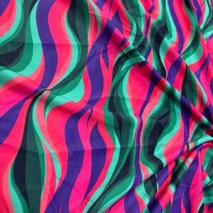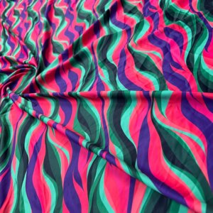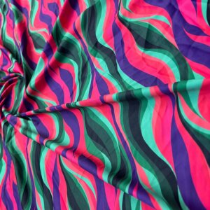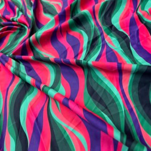 Green and Purple Waves Pink Background Print Nylon Lycra Spandex Fabric 4 Way Stretch By Yard for swimwear dancewear gymwear sportwear dress