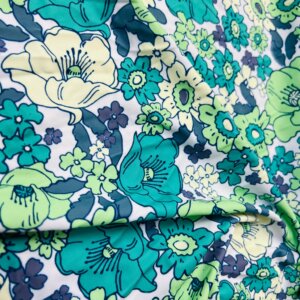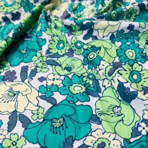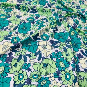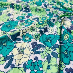 Green Flowers White Background Print Nylon Lycra Spandex Fabric 4 Way Stretch By Yard for swimwear dancewear gymwear sportwear dress skirt (239-6)