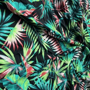 Green Leaves black Background print Nylon lycra Spandex Fabric 4 Way Stretch for swimwear dancewear gymwear sportwear dress skirt (205-6)