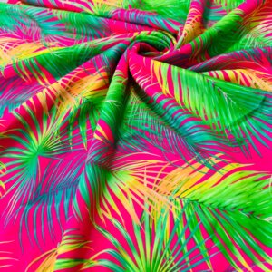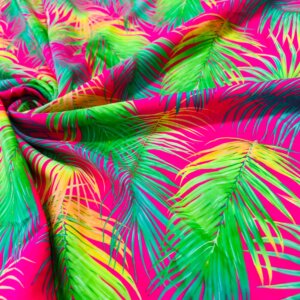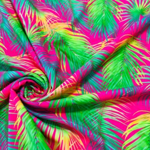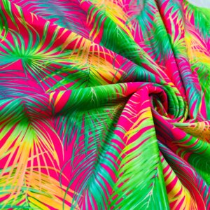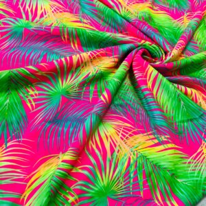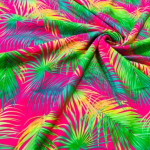 Green Leaves Hot Pink Background Print Nylon Lycra Spandex Fabric 4 Way Stretch By Yard for swimwear dancewear gymwear sportwear dress (239-14)