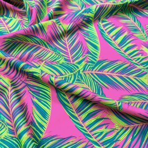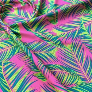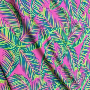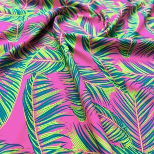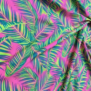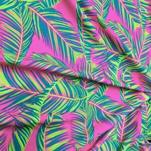 Green Leaves Pink Background Print Nylon Lycra Spandex Fabric 4 Way Stretch By Yard for swimwear dancewear gymwear sportwear dress (203-9)