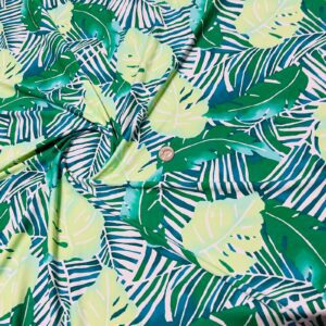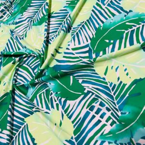 Green Leaves Print Nylon Lycra Spandex Fabric 4 Way Strech by Yard for swimwear dancewear dress gymwear (279-9)