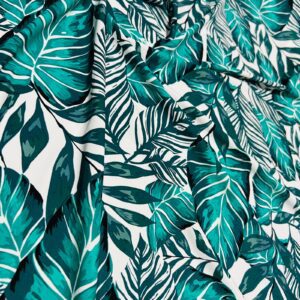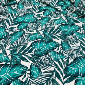 Green Leaves White Background Print Nylon Lycra Spandex Fabric 4 Way Strech by Yard for swimwear dancewear dress gymwear (204-12)