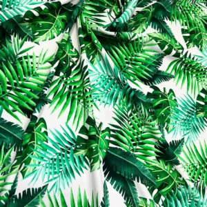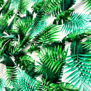 Green Leaves White background Print Nylon Lycra Spandex fabric four way Stretch by Yard for swimwear dancewear dress gymwear (243-10)