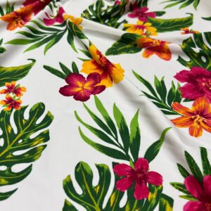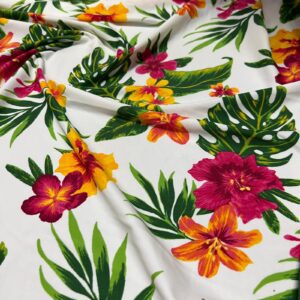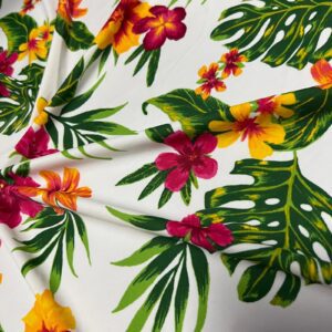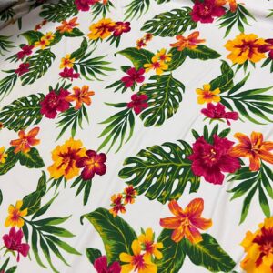 Hawaiian Cayennes and Leaves Print Nylon Lycra Spandex Fabric 4 Way Stretch by Yard for Swimwear dancewear dress gymwear (204-3)