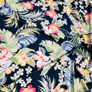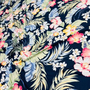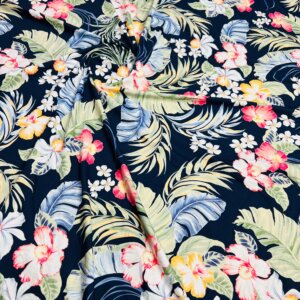 30″ Long / Hawaiian Flowers Navy Blue Background Print Nylon Lycra Spandex Fabric 4 Way Stretch By Yard for swimwear dancewear gymwear sportwear dress (203-7)