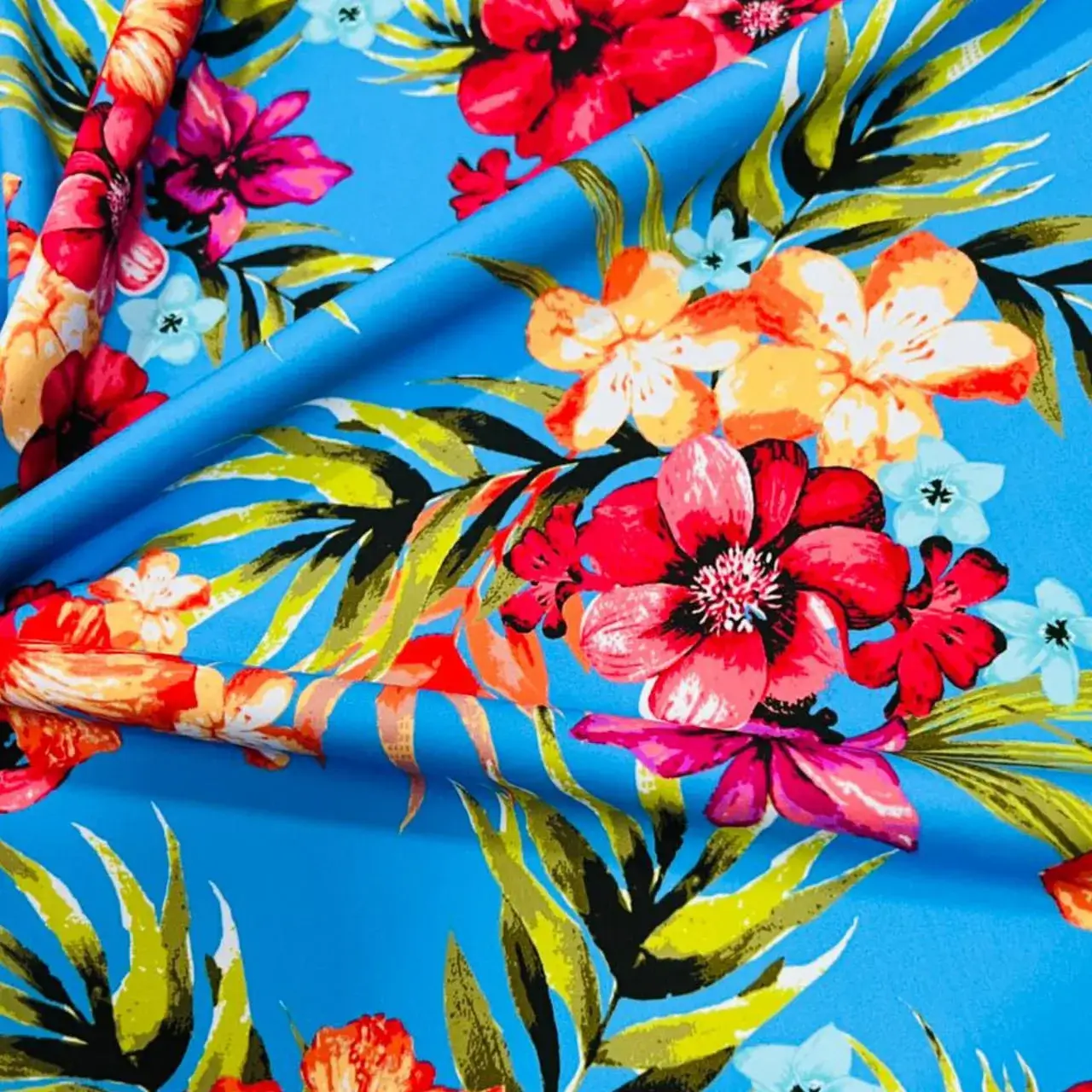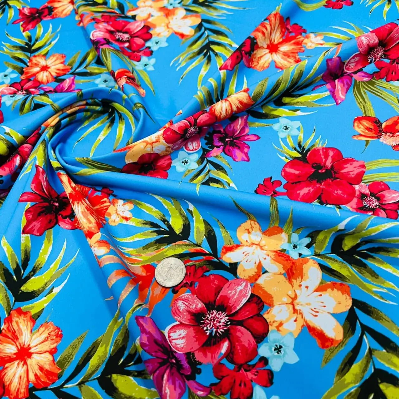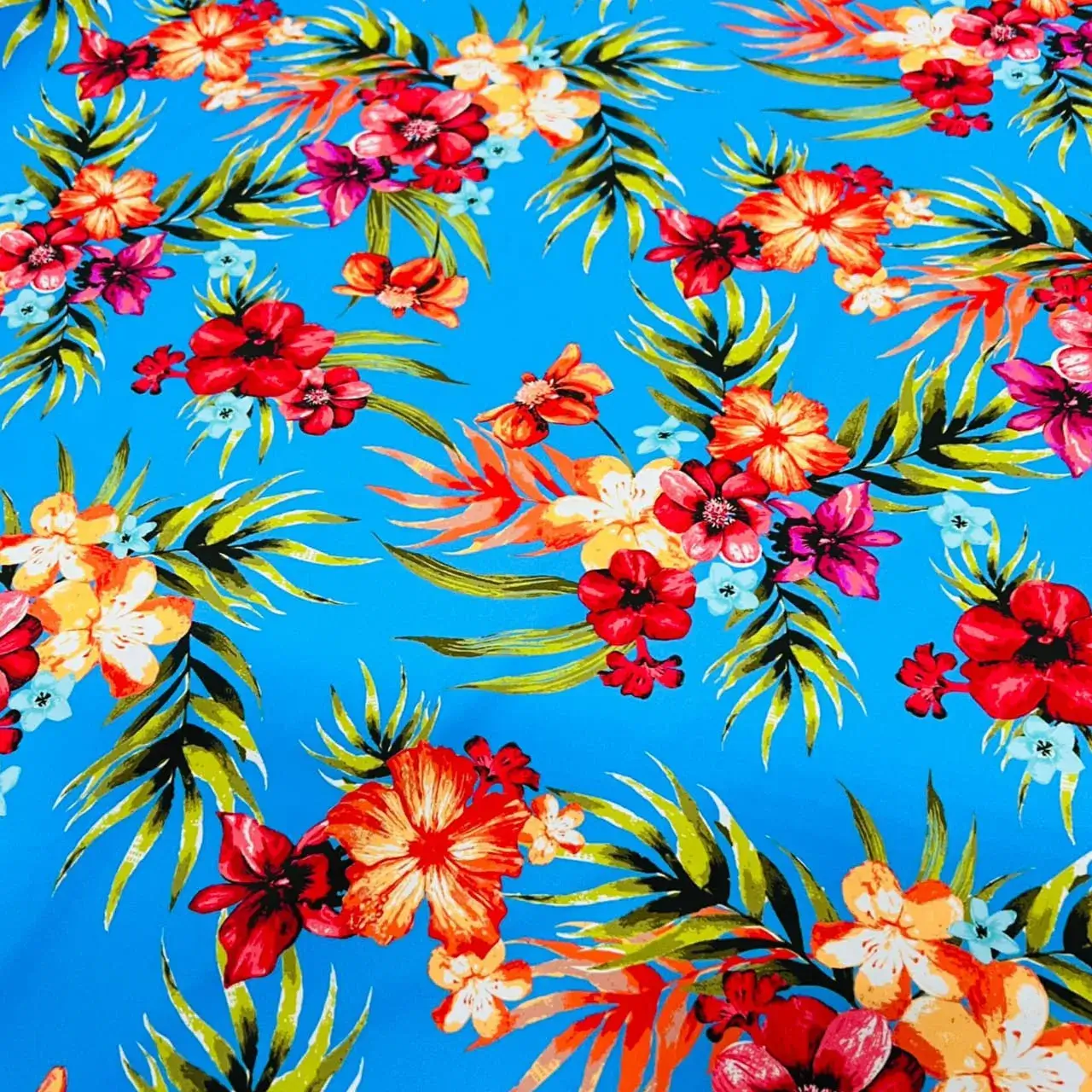 Hawaiian Tropical Flowers Print Nylon Lycra Spandex fabric four way Stretch by Yard for swimwear dancewear dress gymwear