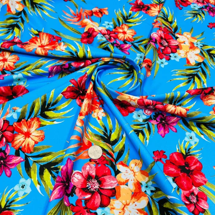 1 yard 9″ Long / Hawaiian Tropical Flowers Print Nylon Lycra Spandex fabric four way Stretch by Yard for swimwear dancewear dress gymwear (243-8)