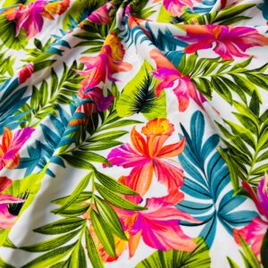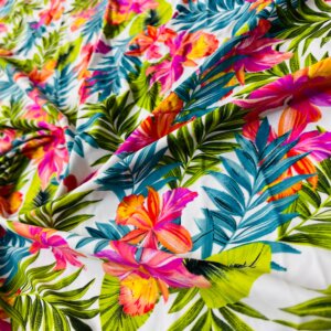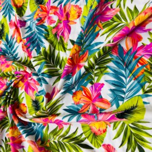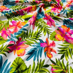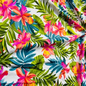 18″ Long / Hawaiian Tropical Flowers Print Nylon Spandex Fabric 4 Way Stretch for swimwear dancewear gymwear sportwear dress skirt (242-2)