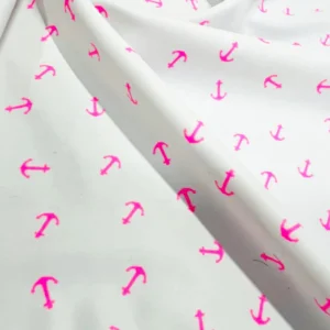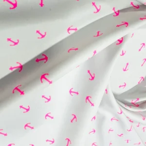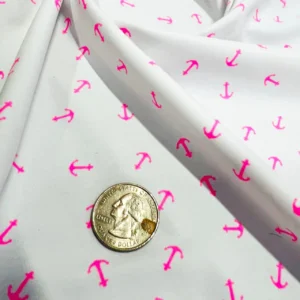 Hot Pink Anchors White Background Print Nylon Spandex Fabric 4 Way Stretch By Yard for swimwear dancewear gymwear sportwear dress skirt (239-5)