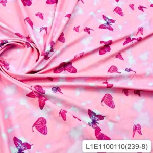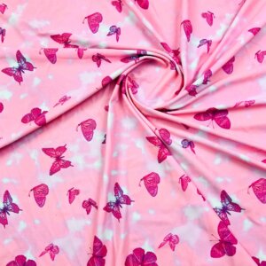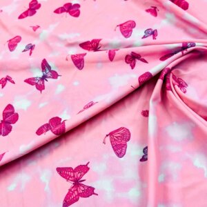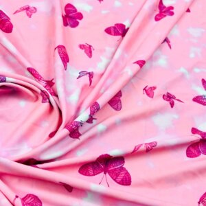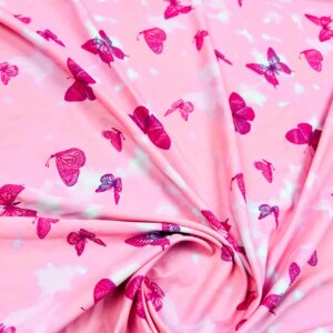 Hot Pink Butterflies Pastel Pink Background Print Nylon Spandex Fabric 4 Way Stretch By Yard for swimwear dancewear gymwear sportwear dress skirt (239-8)