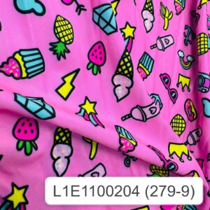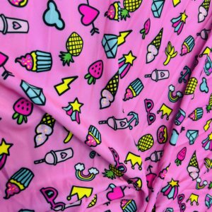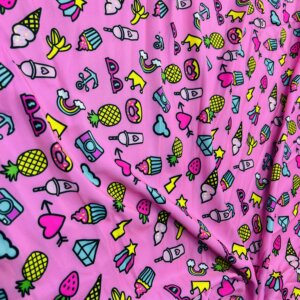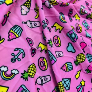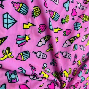 14″ Long / Ice Cream and objects Pink background Print Nylon Lycra Spandex Fabric 4 Way Stretch By Yard for swimwear dancewear gymwear sportwear dress (204-7)