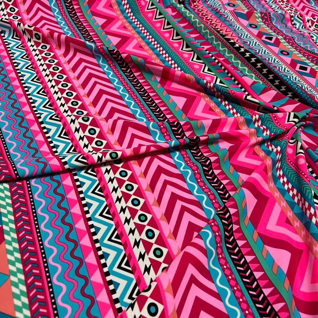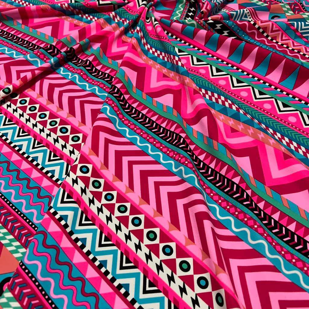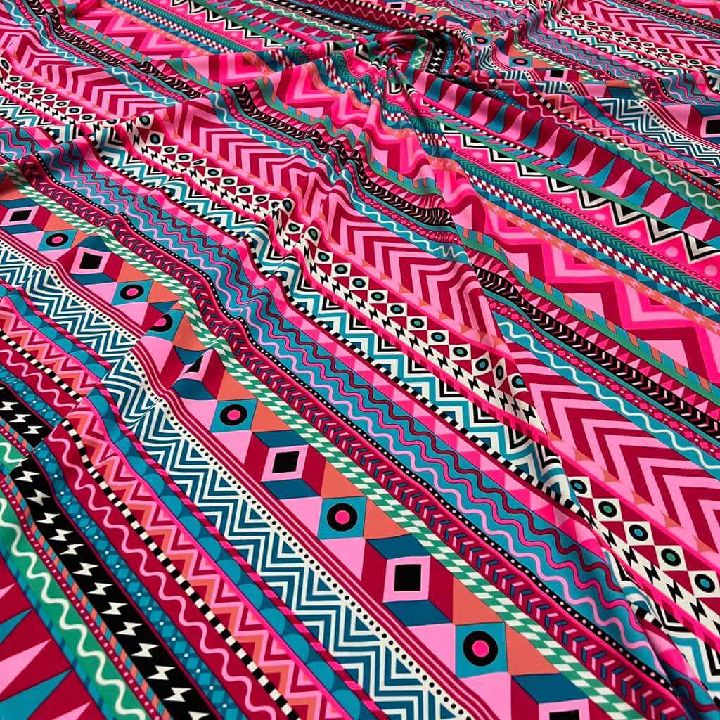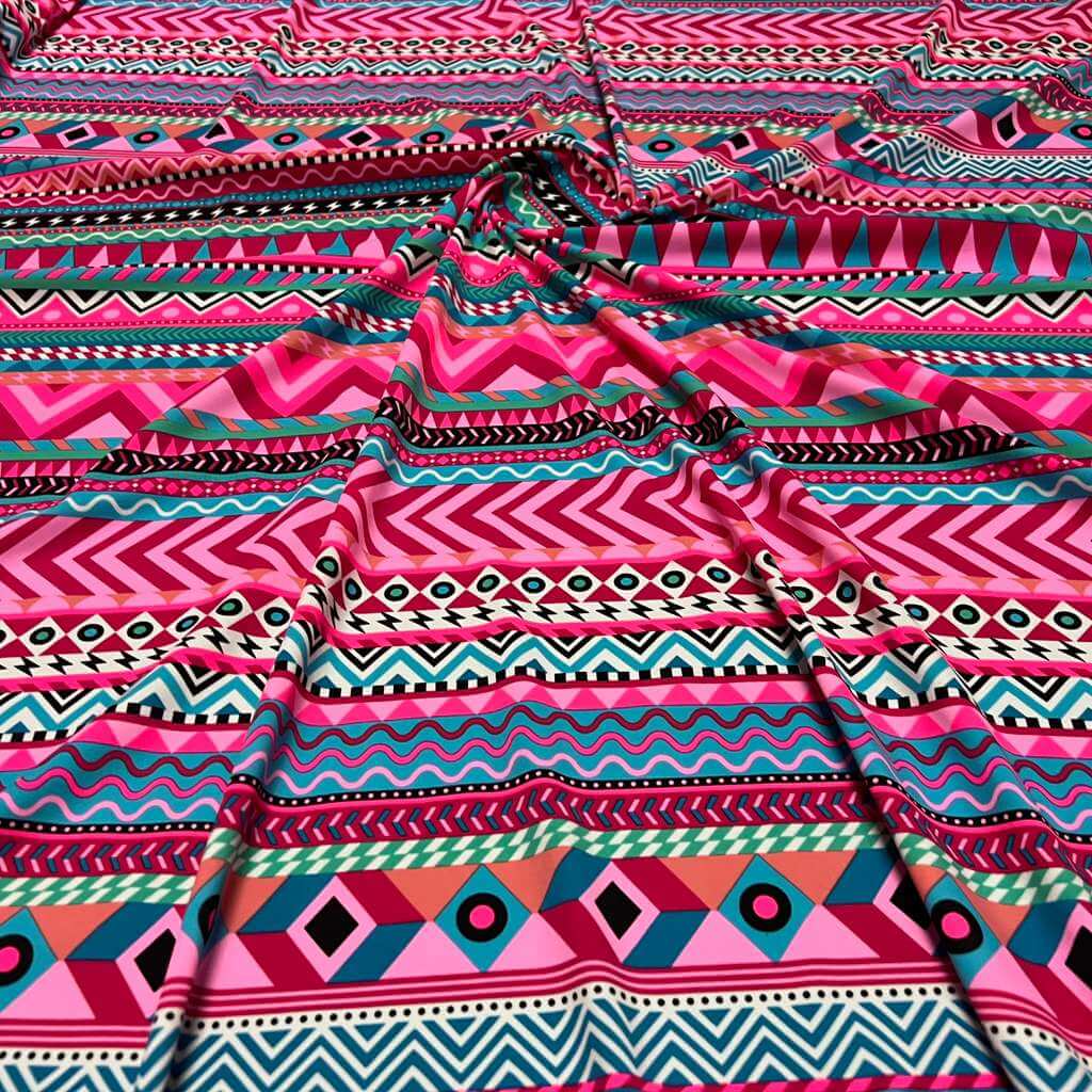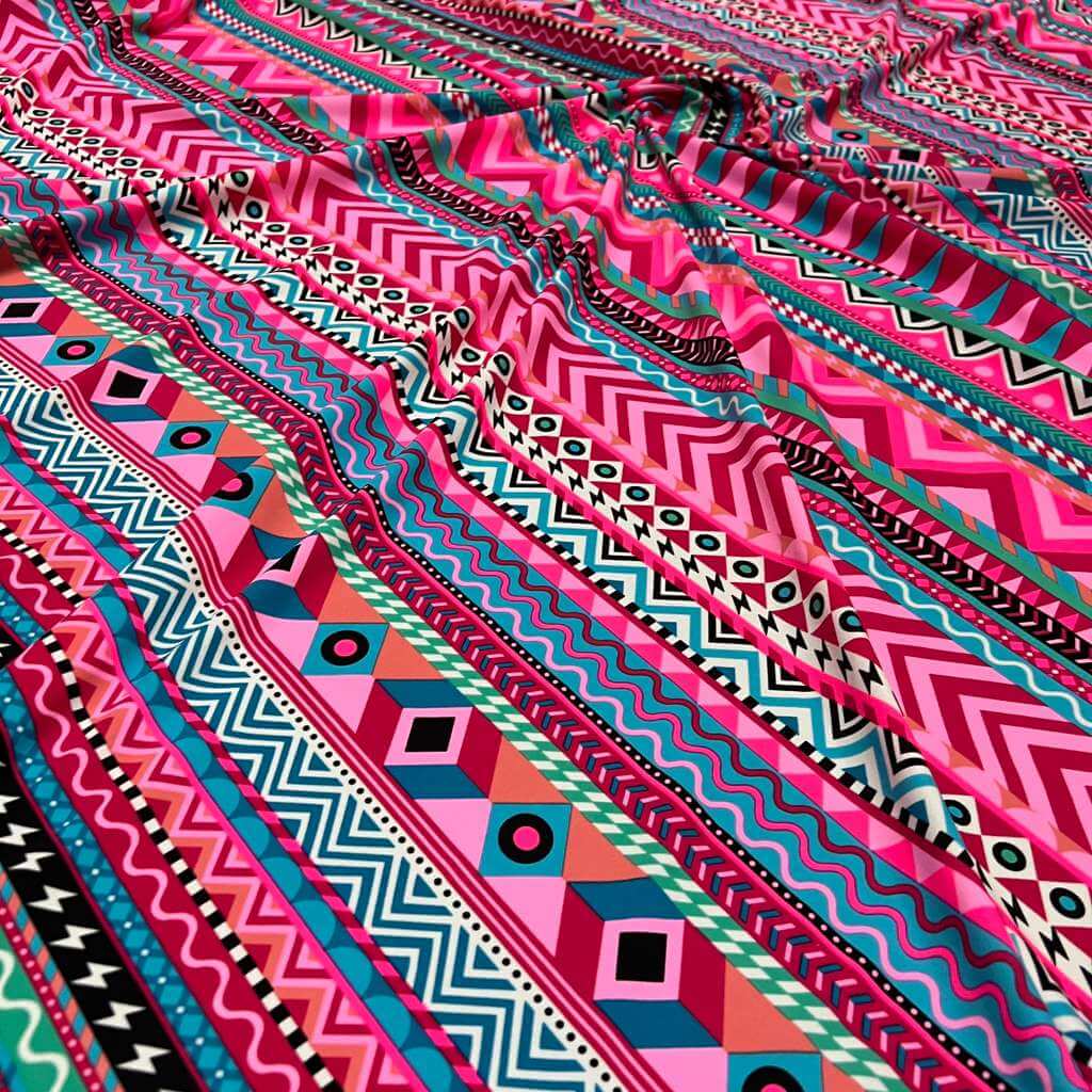 Indian Ethnic Colored Blue & Pink print Nylon Lycra Spandex Fabric 4 Way Stretch By Yard for swimwear dancewear gymwear sportwear dress