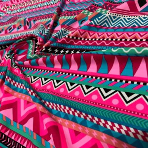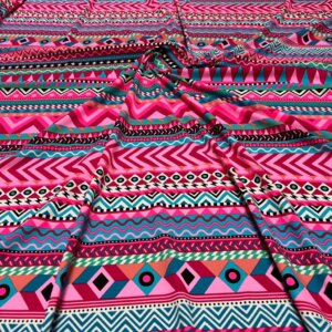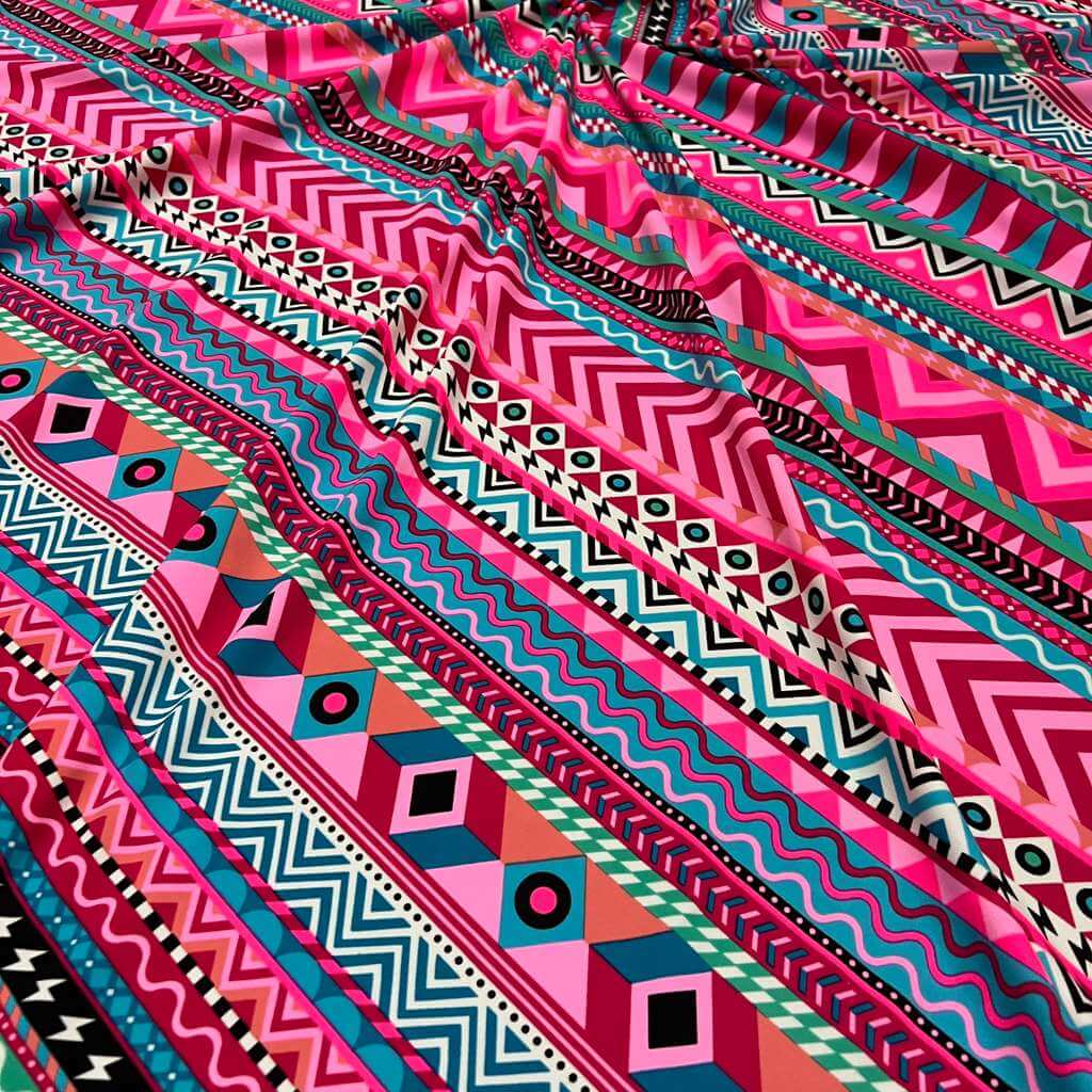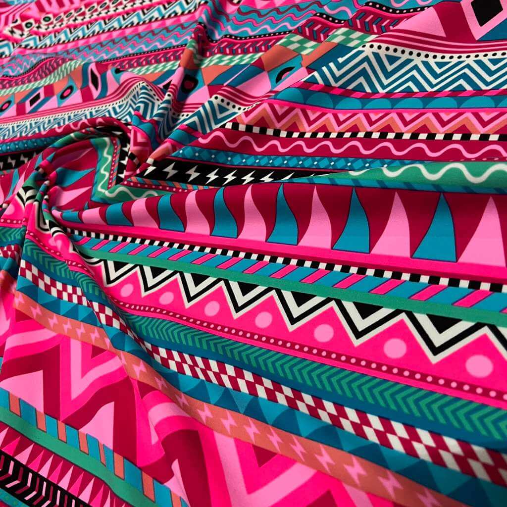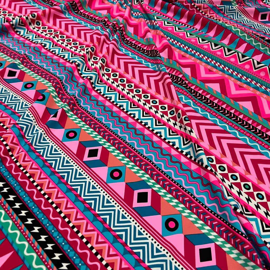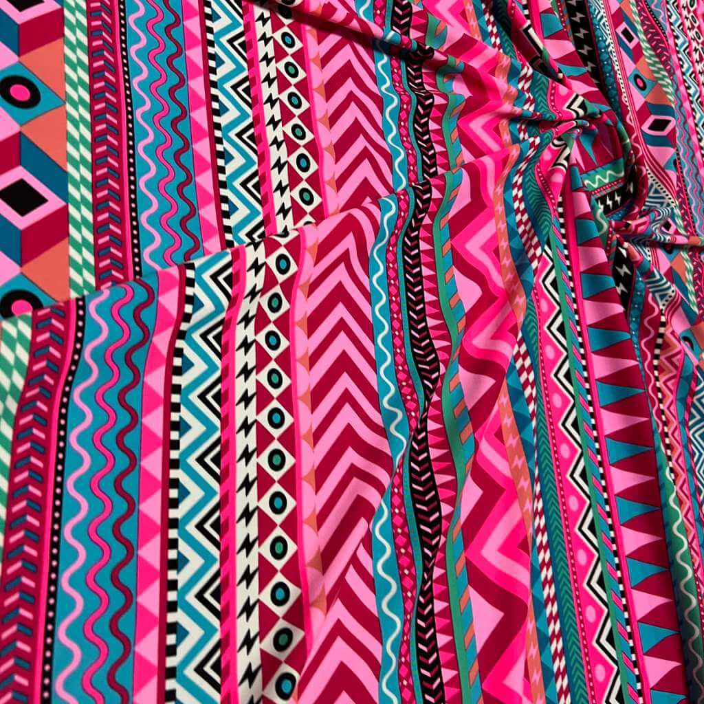 Indian Ethnic Colored Blue & Pink print Nylon Lycra Spandex Fabric 4 Way Stretch By Yard for swimwear dancewear gymwear sportwear dress