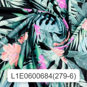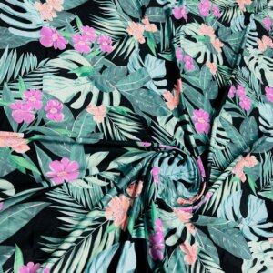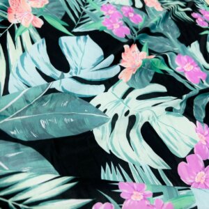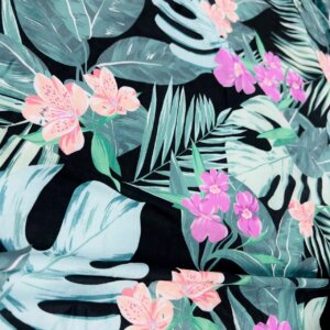 1 YD 10″ Long/ Leaves and Cayennes Black background Print Nylon Lycra Spandex Fabric 4 Way Stretch By Yard for swimwear dancewear gymwear sportwear dress (279-6)
