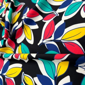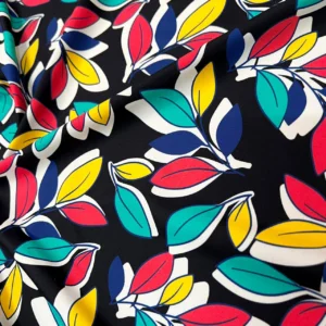 Leaves Black background Print Nylon Spandex Fabric 4 Way Stretch By Yard for swimwear dancewear gymwear sportwear dress skirt (239-7)