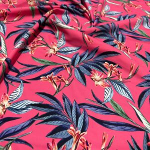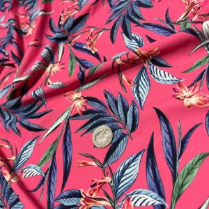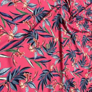 Leaves Coral Background Print Nylon Lycra Spandex Fabric 4 Way Stretch by Yard for swimwear dancewear dress gymwear (205-5)