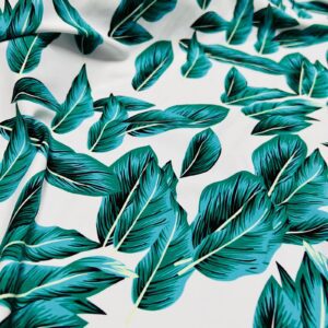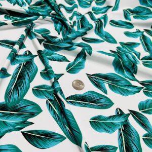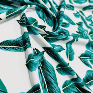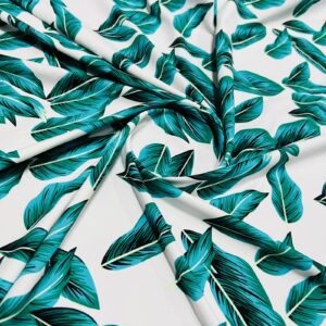 Leaves White background Print Nylon Lycra Spandex Fabric 4 Way Strech by Yard for swimwear dancewear dress gymwear (157-13)