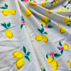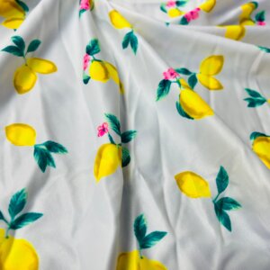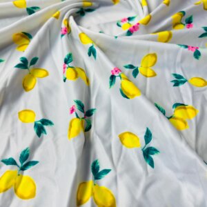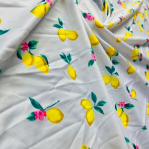 Lemons white background Print Nylon Lycra Spandex Fabric 4 Way Stretch By Yard for swimwear dancewear gymwear sportwear dress (204-4)