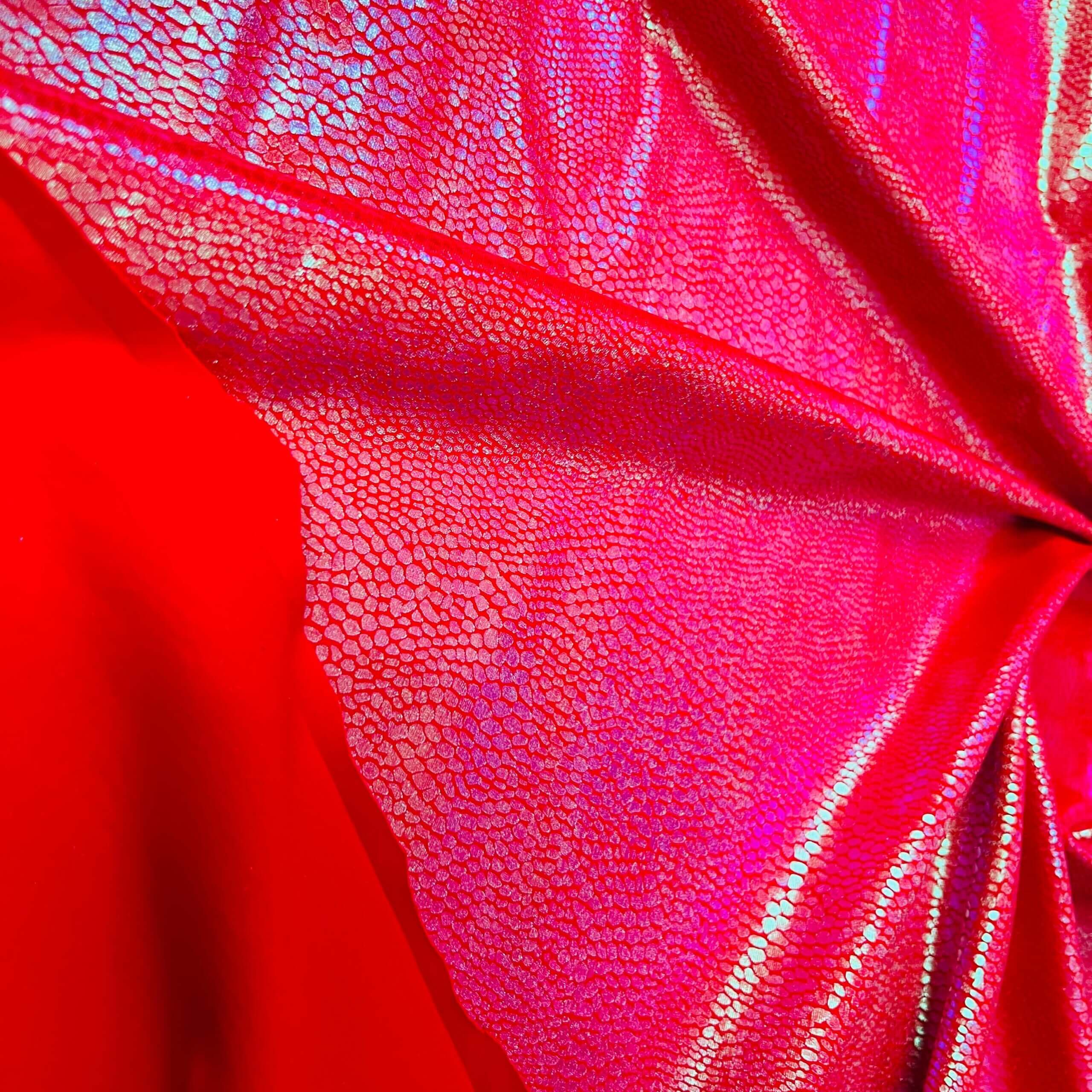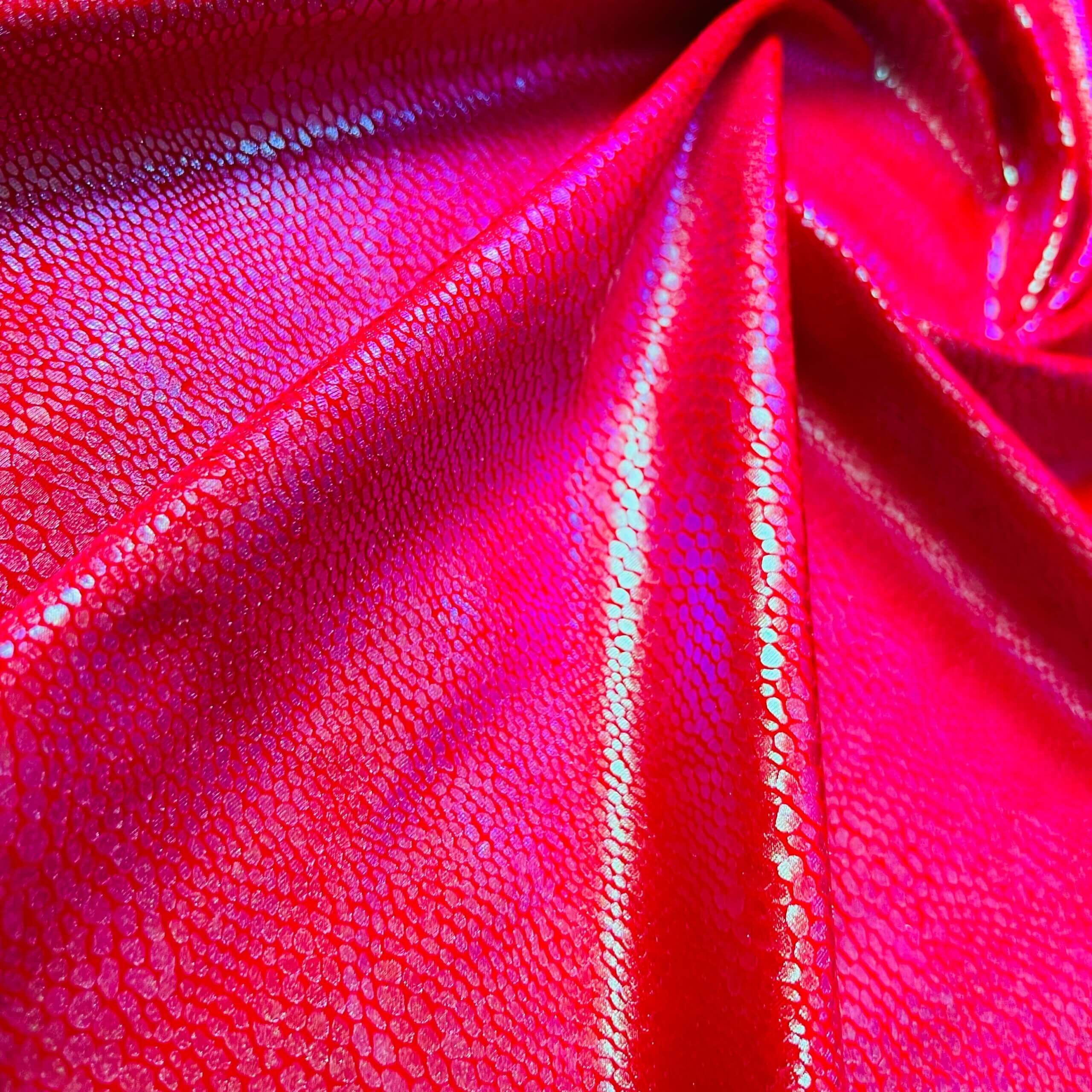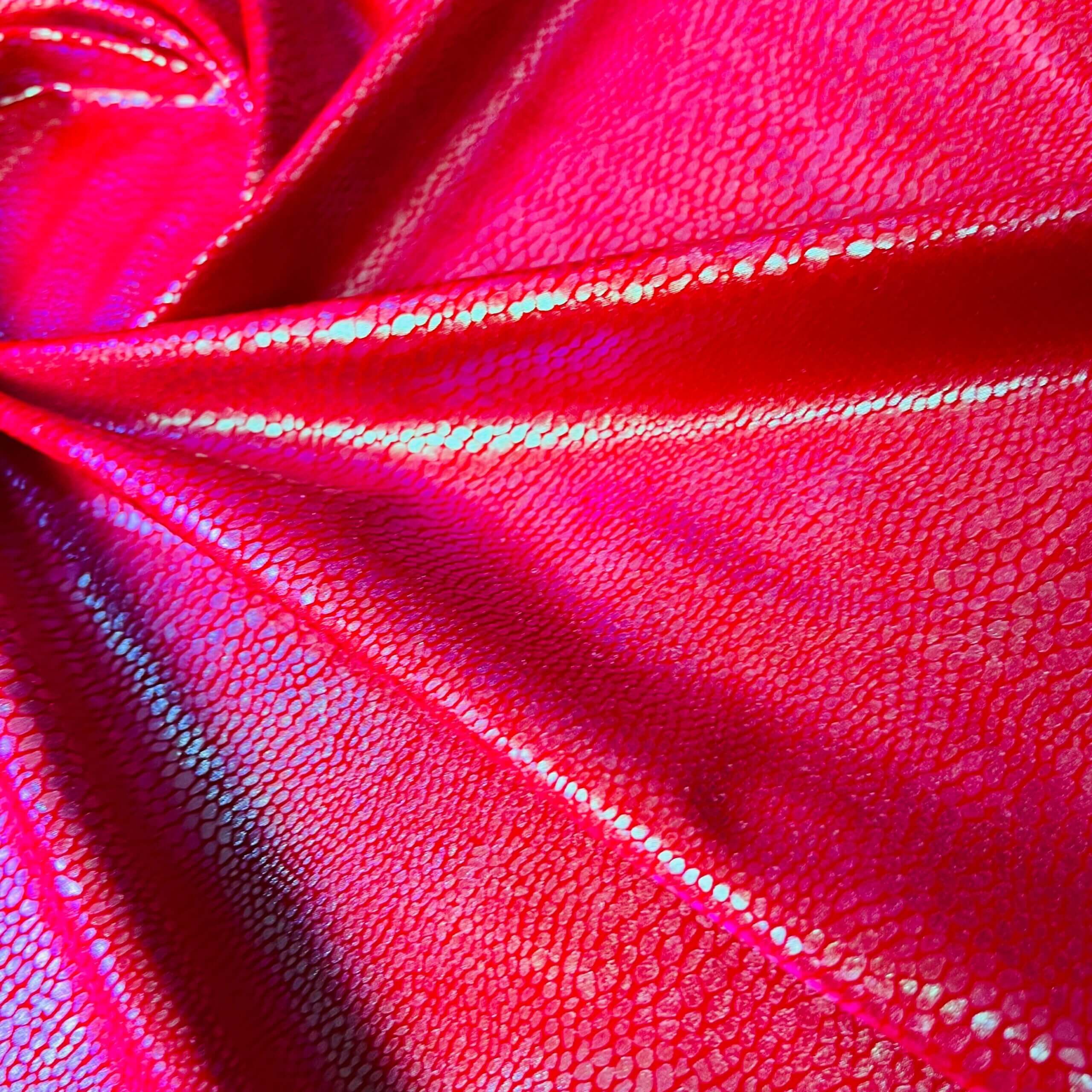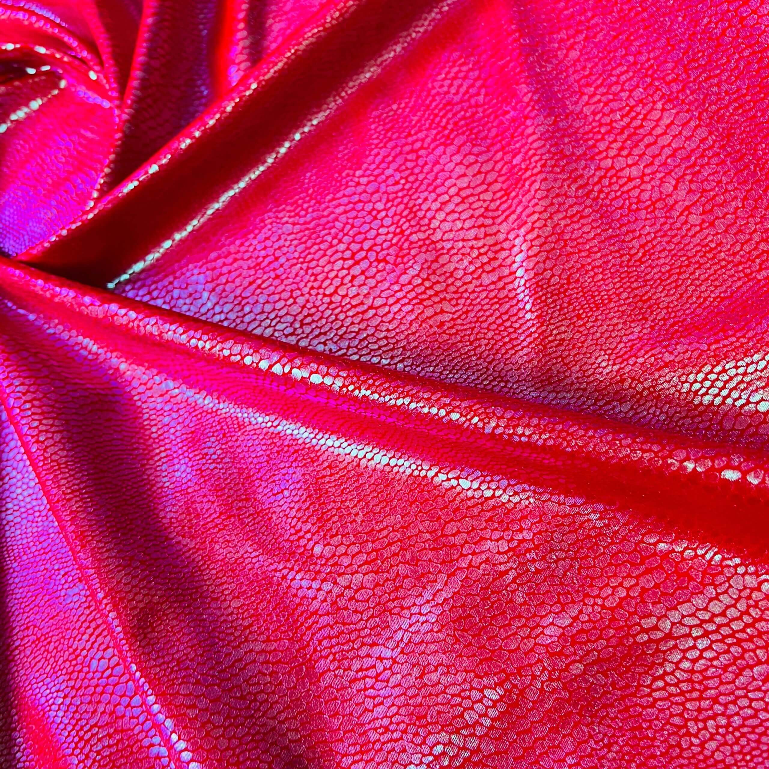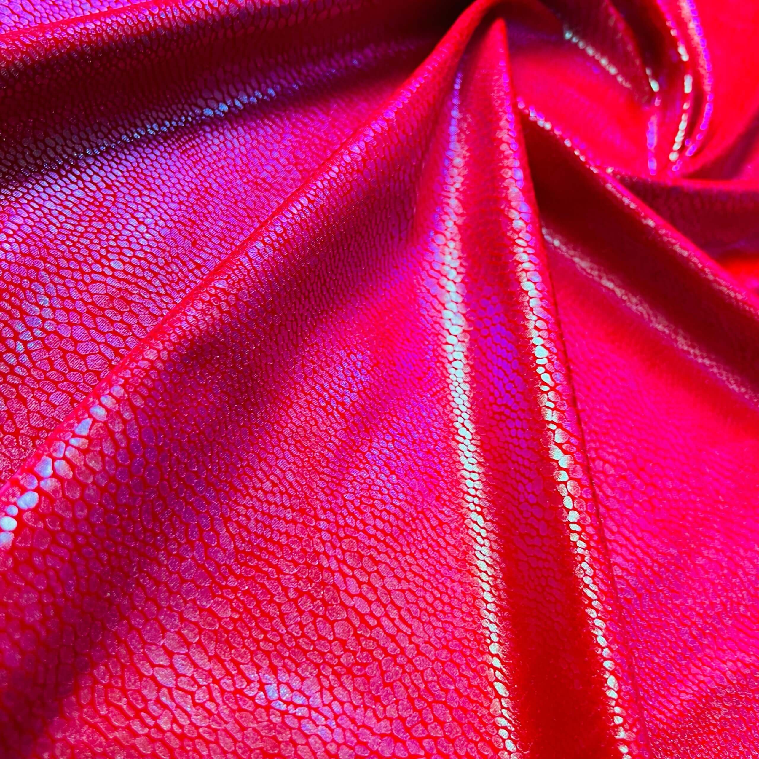 You are viewing Litmus Red Pearl Hologram Metallic Stretch Foil Fabric Nylon Lycra Spandex Fabric 4 Way Stretch By Yard for swimwear dancewear sportwear dress