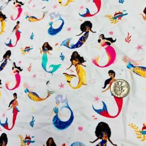 Mermaids Print Nylon Spandex lycra Fabric 4 Way Stretch By Yard for swimwear dancewear gymwear sportwear dress skirt (203-1)