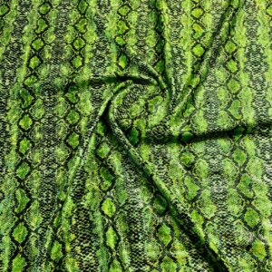 18″ Long / Metallic Green Snake Print Nylon Lycra Spandex Fabric 4 Way Stretch By Yard for swimwear dancewear gymwear sportwear dress (205-1)